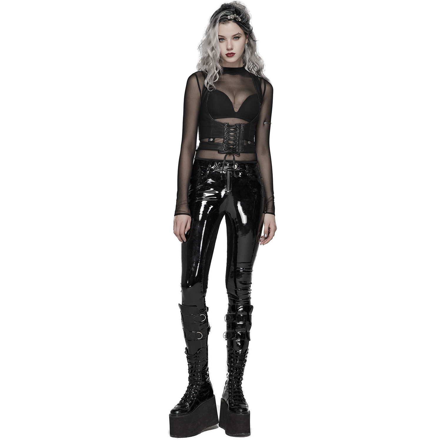 • In imitation patent leather • Adjustable and removable buckle straps • Wide belt with double buckle • Lacing at back • 55% Polyester, 45% PU By Punk Rave SIZES CHART IN CENTIMETERS SIZING...