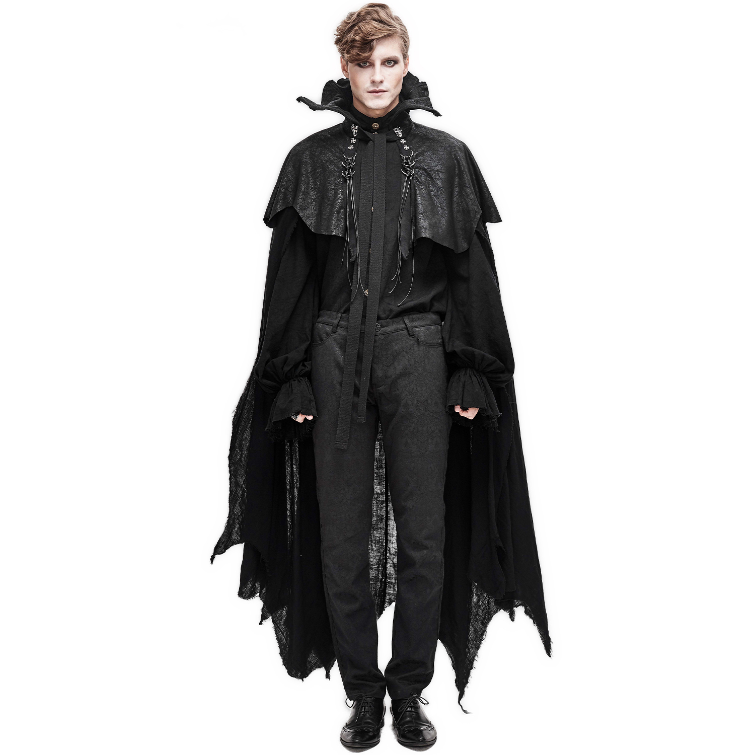 Free size men's Gothic long black cape with oversized hood. • Trimmed with beige-white synthetic fur. • Triple tiered caplet style shoulders. • This full drape coat ties at the neck. • Lining :...