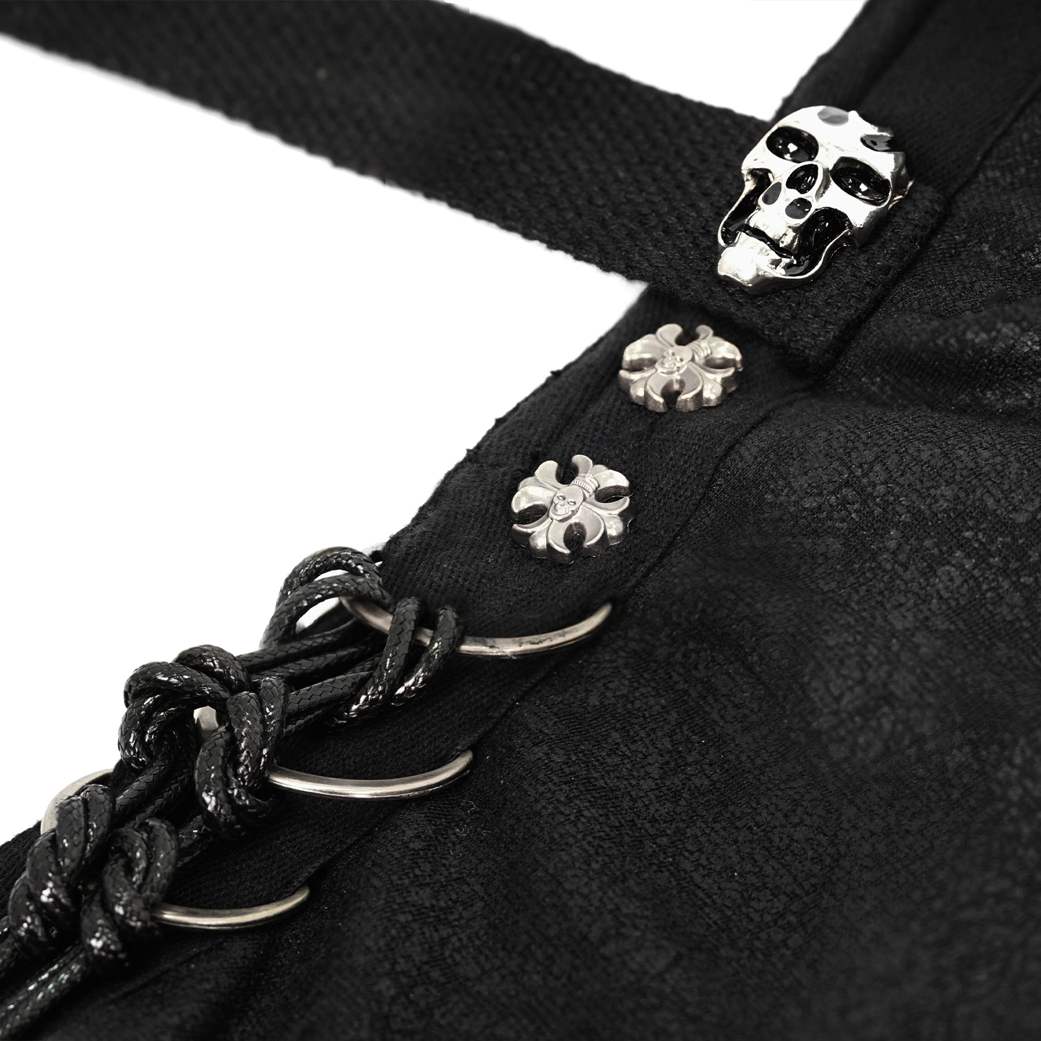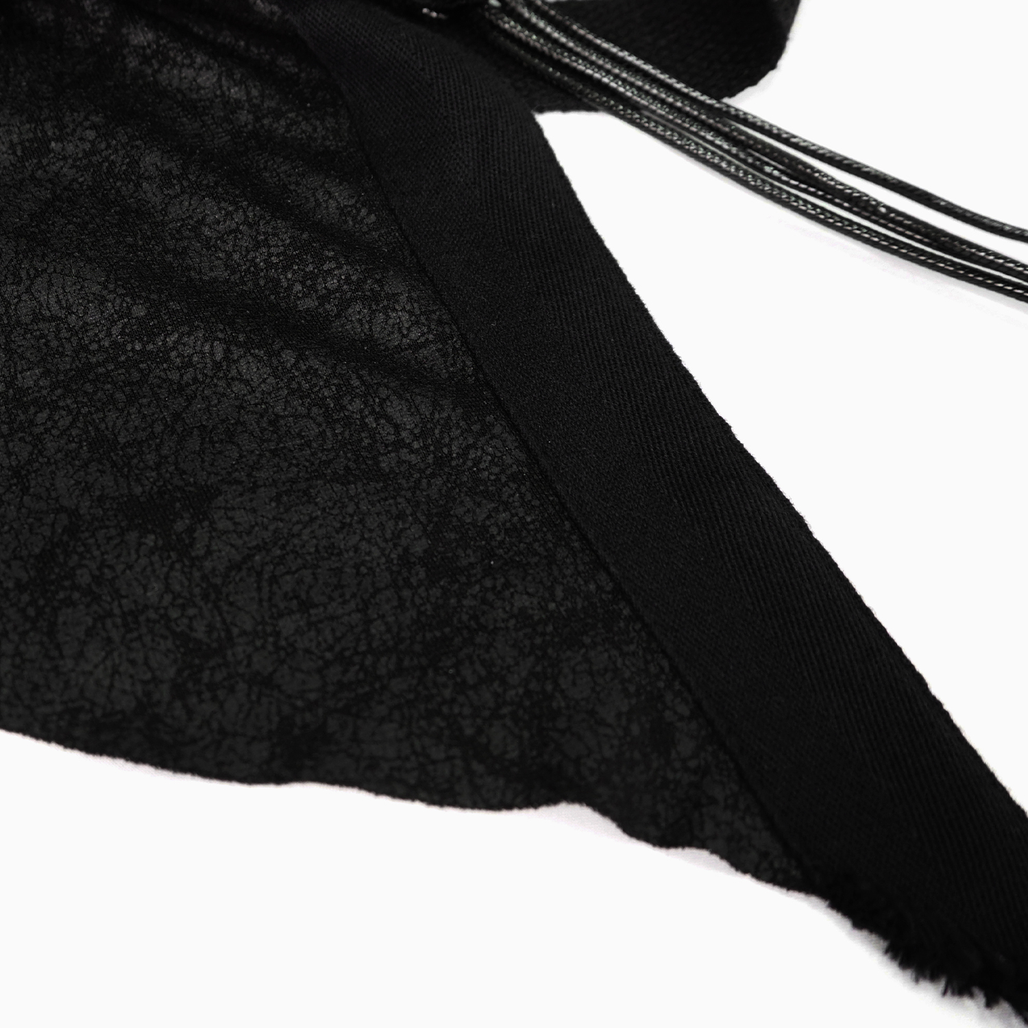 • Oversized hood • Fastens with a buckle featuring skull-shaped rivets • Vegan leather lacing with eyelets on faux leather straps at the shoulders • Vegan leather straps around the hood • Wide...