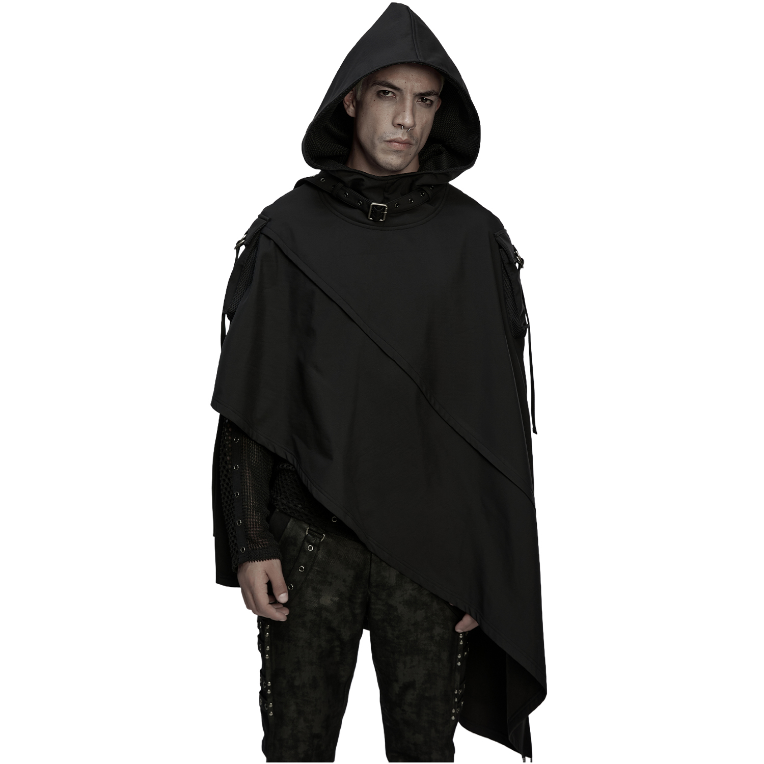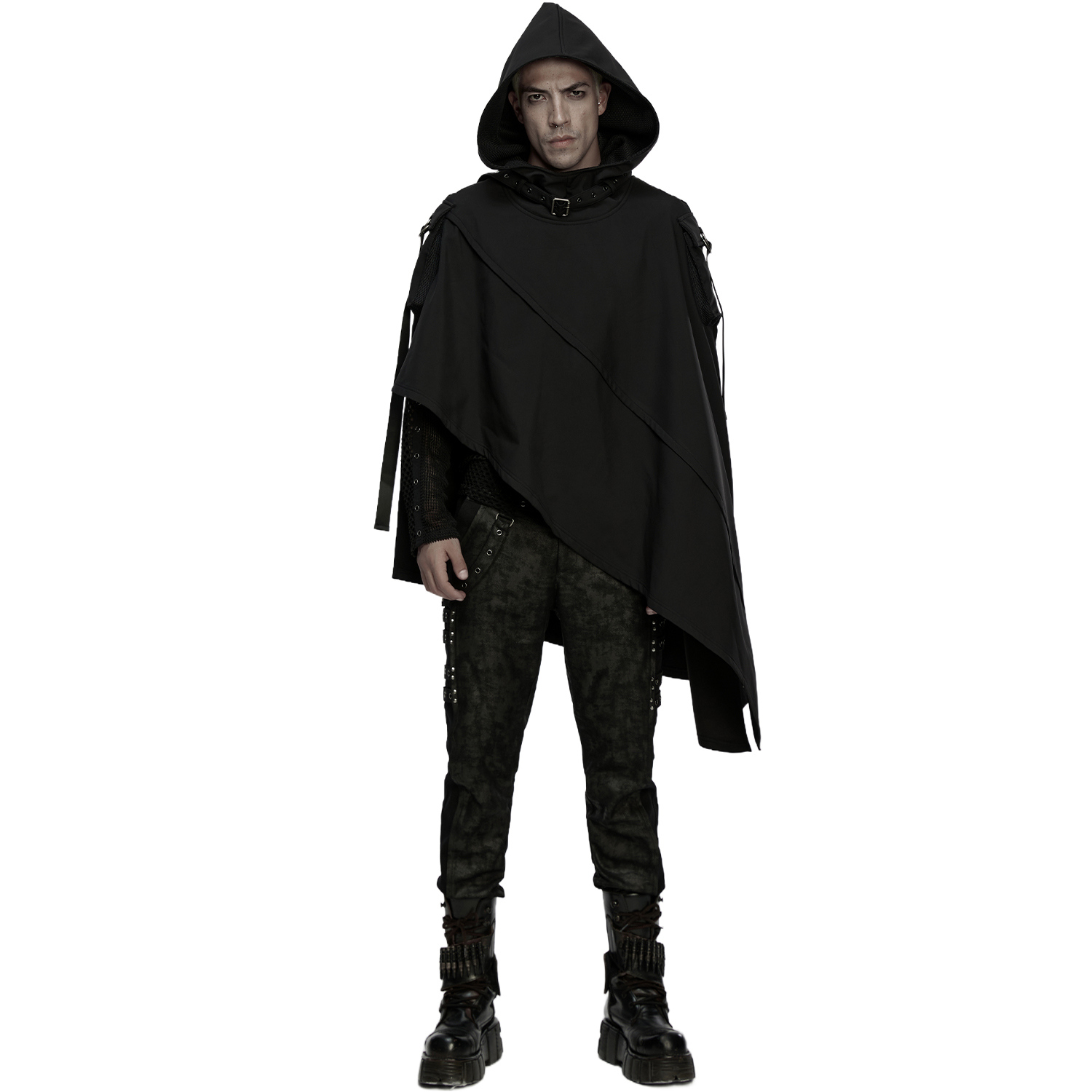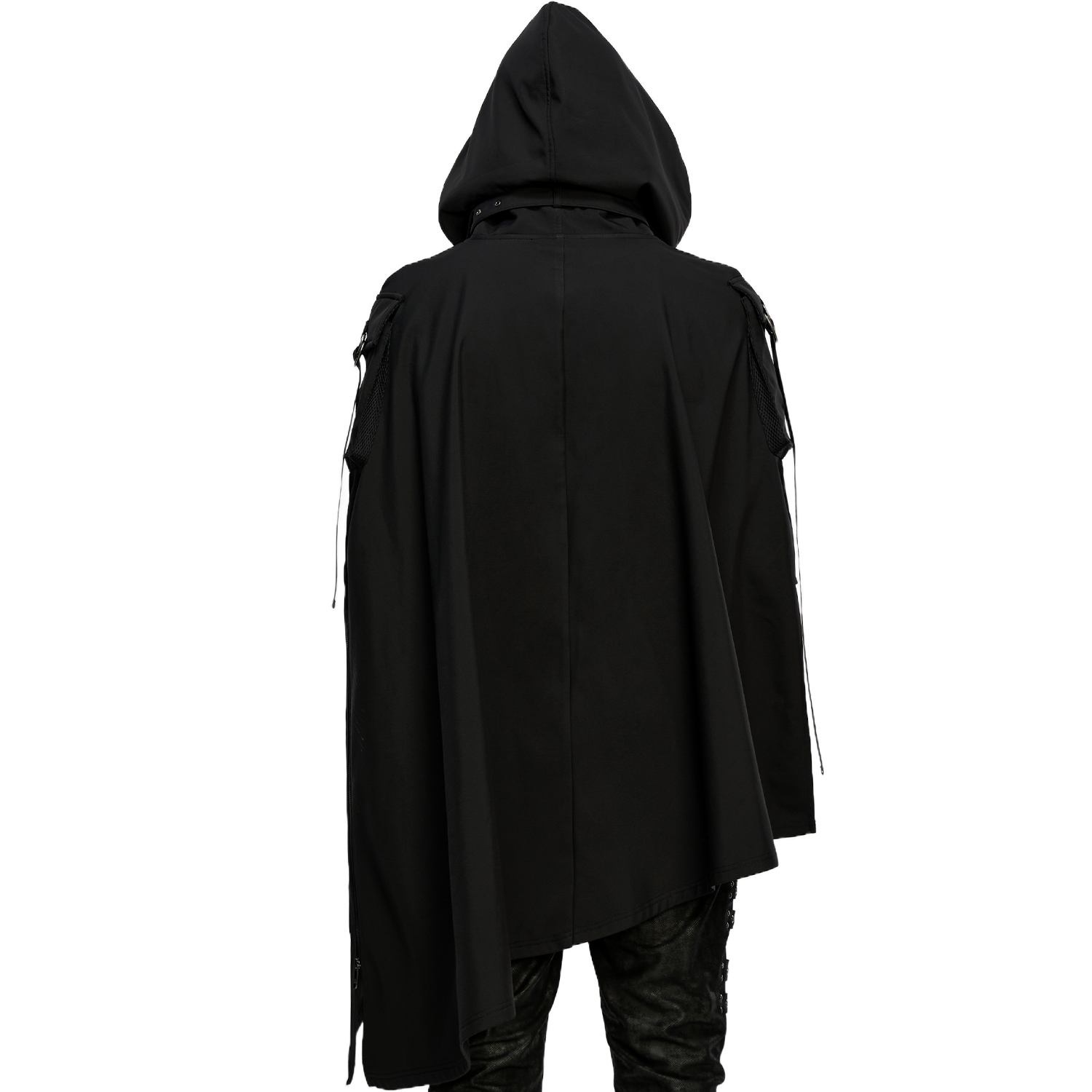 Free size men's Gothic long black cape with oversized hood. • Trimmed with beige-white synthetic fur. • Triple tiered caplet style shoulders. • This full drape coat ties at the neck. • Lining :...