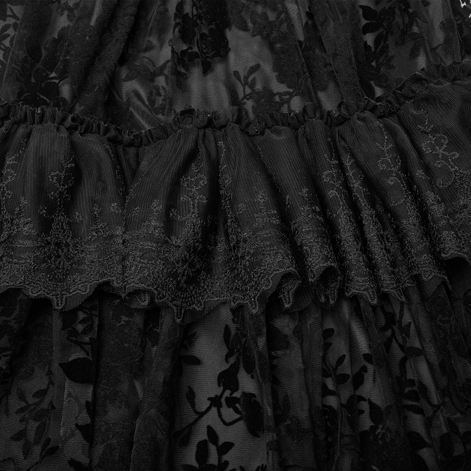 • In tulle and non-elastic printed fabric