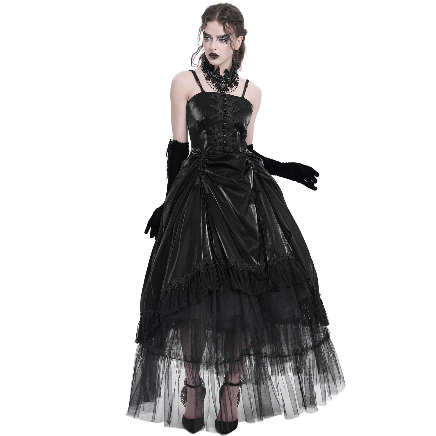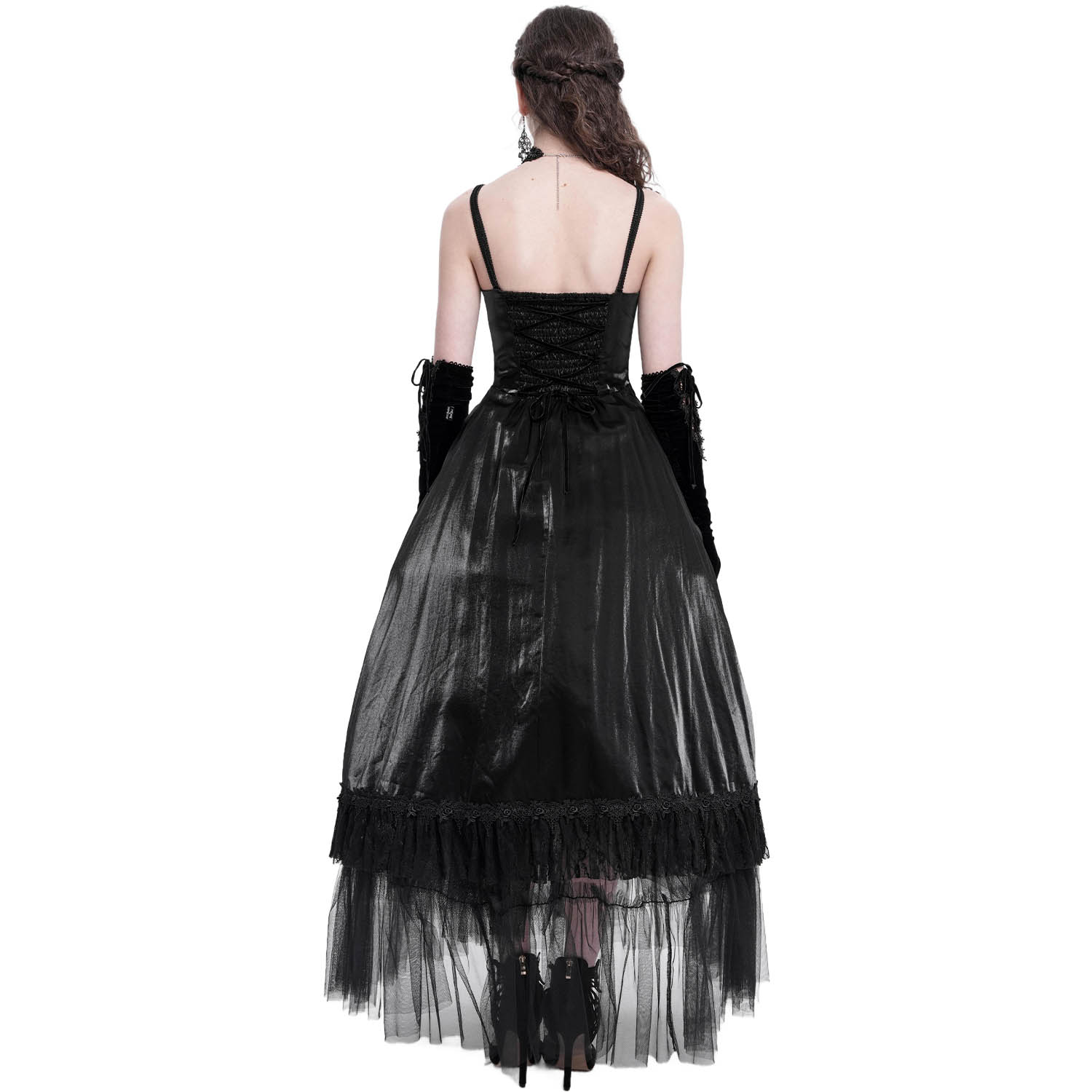 Stunning gothic lace dress • Long and fluid lace skirt • Details in transparent black mesh • Closes with two ornate buttons at the back of the neck and a concealed side zipper • Adjusted lace...