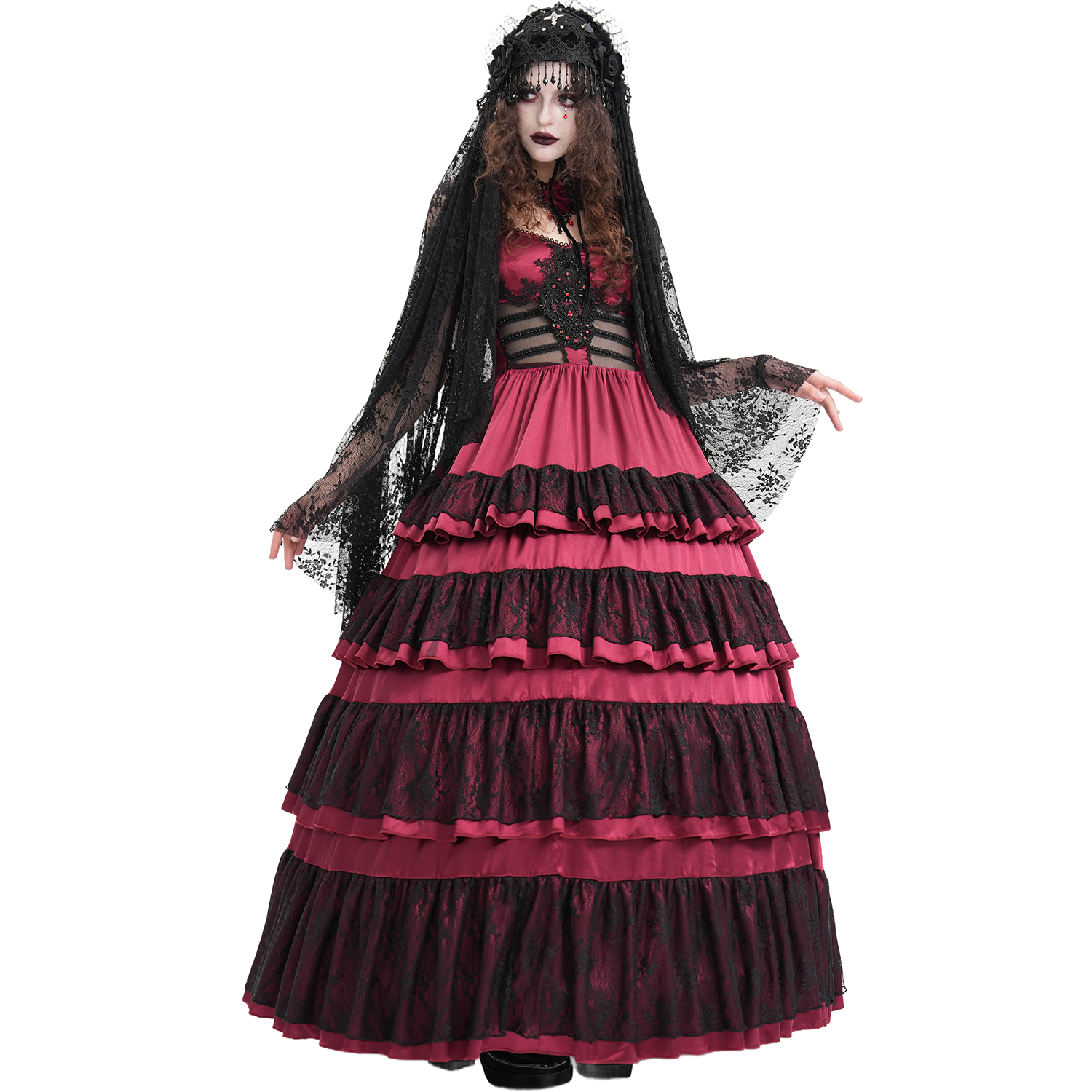 • In aged black fabric and lace • Spliced hem with a variety of fabrics and distributed in an offset manner • Lace with spider web pattern • Dividing eyelets with decorative velvet lacing •...