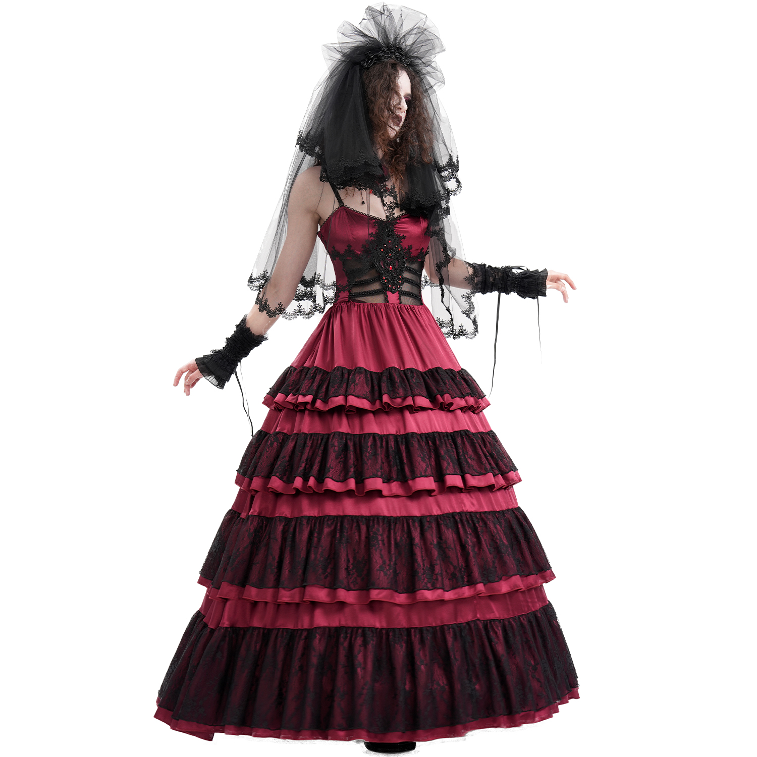 Underbust corset body with triple layered ruffled skirt. • Non-adjustable shoulder straps. • Silver skull buttons at the front imitate the buttoned corsage. • Laced at the back. • Made of...