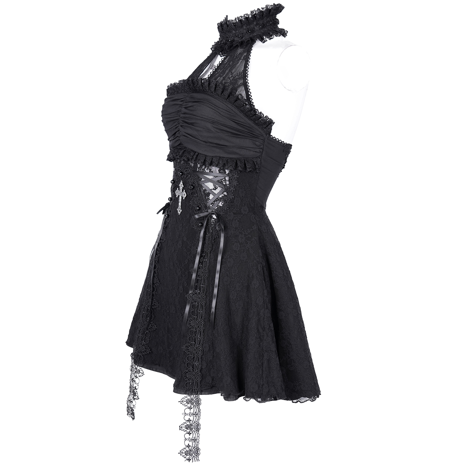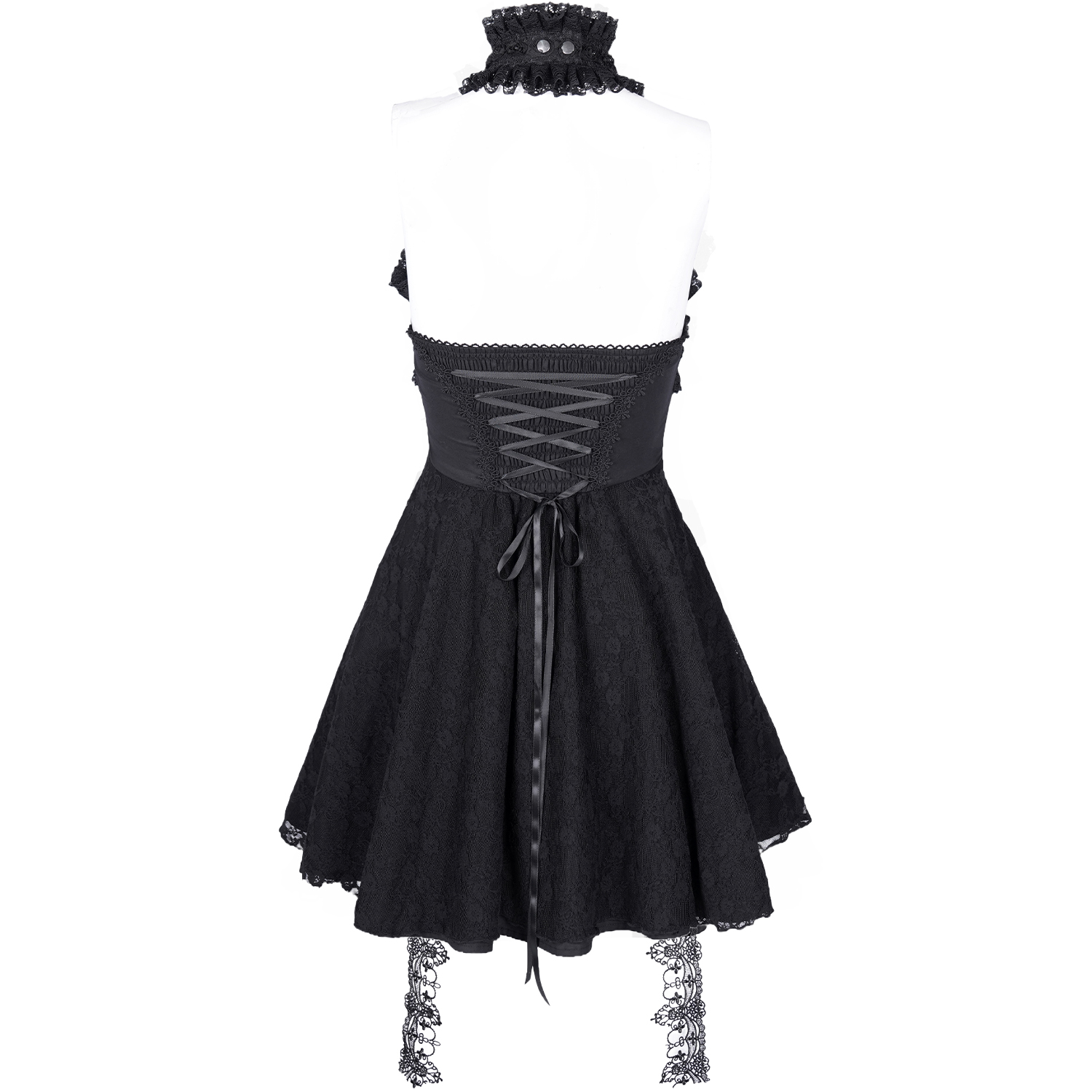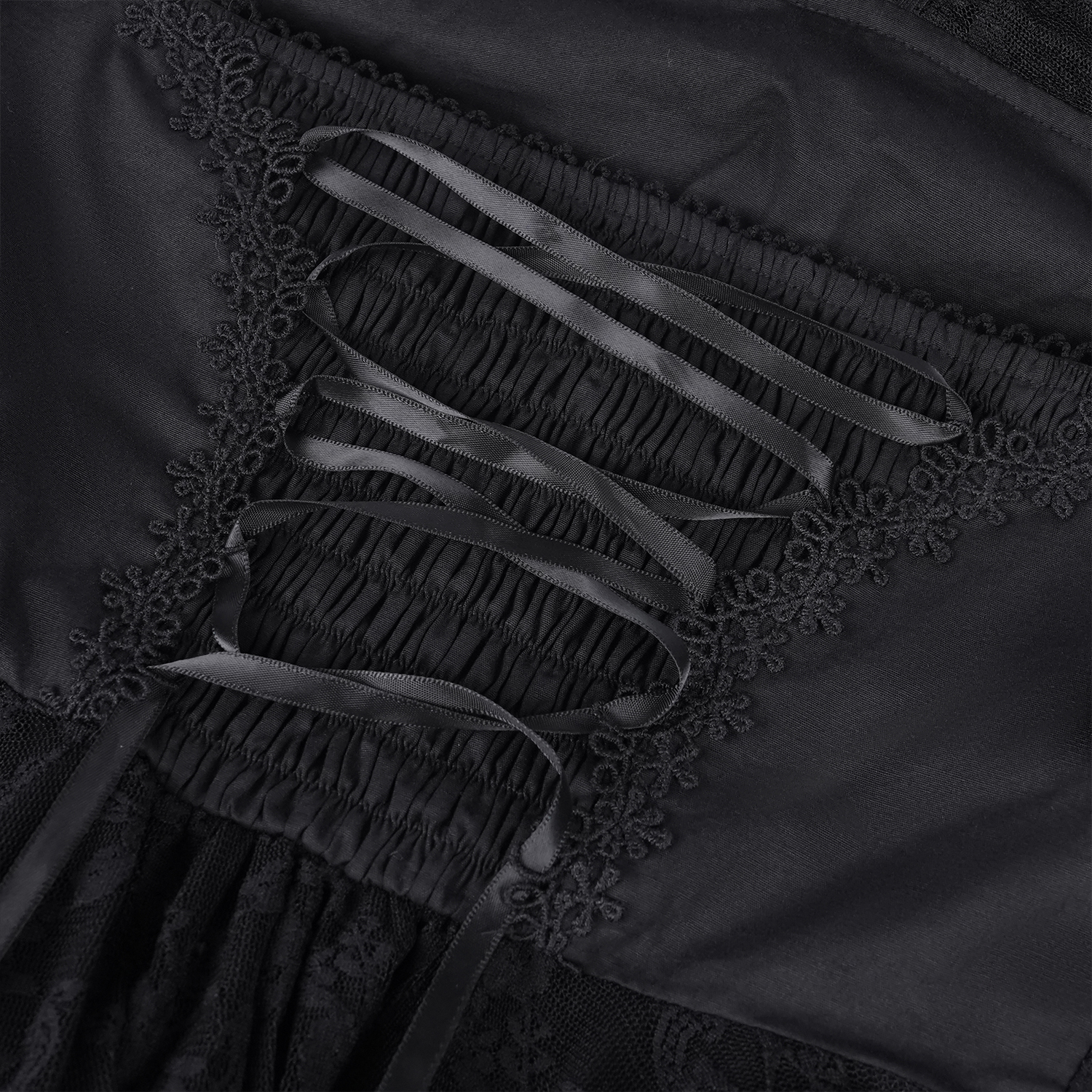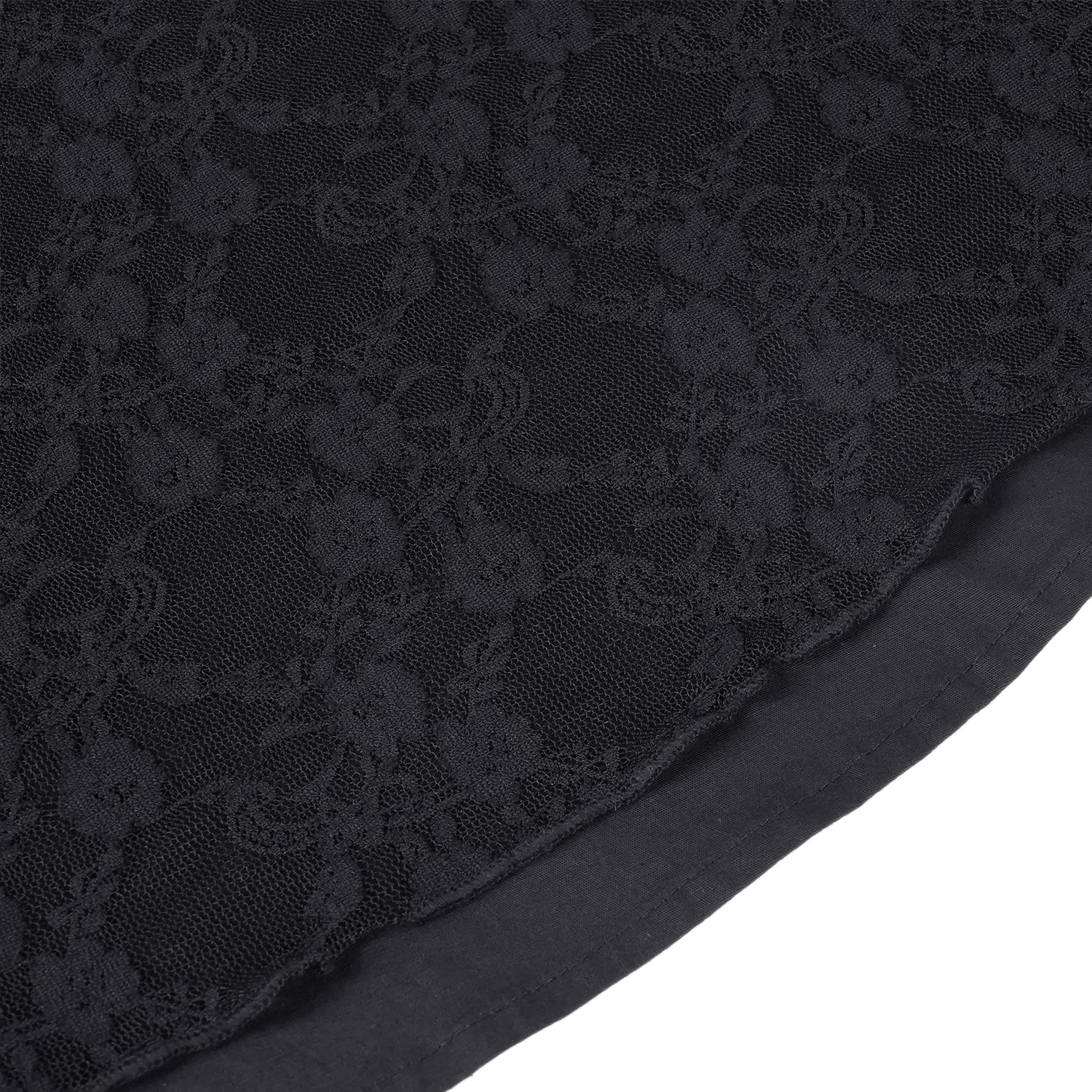 • In aged black fabric and lace • Spliced hem with a variety of fabrics and distributed in an offset manner • Lace with spider web pattern • Dividing eyelets with decorative velvet lacing •...