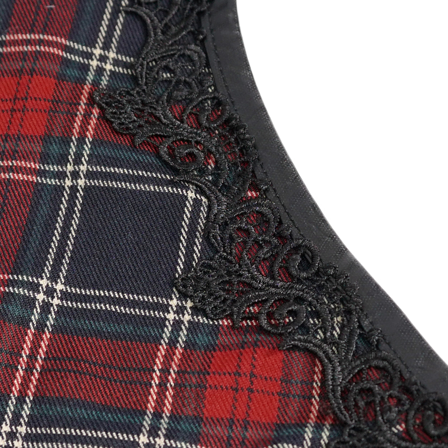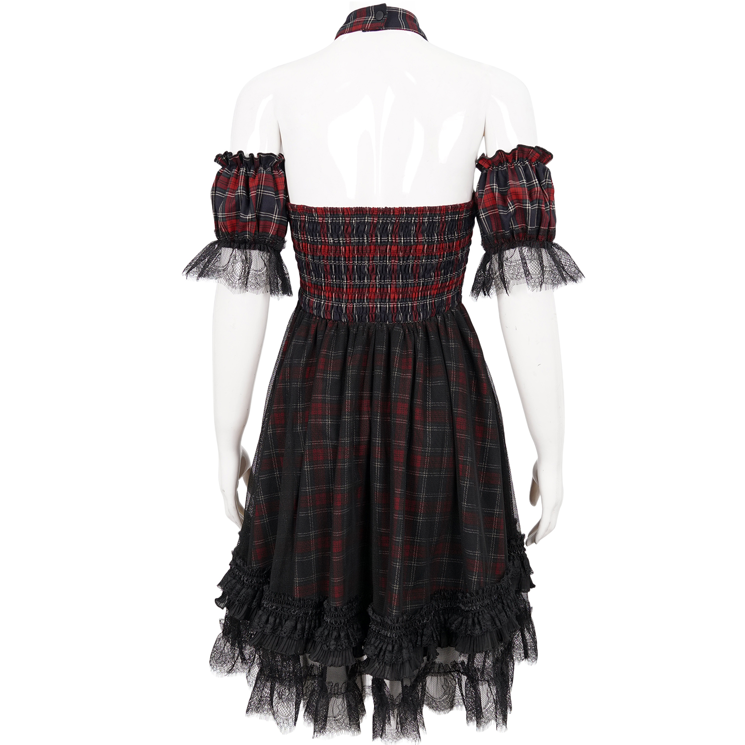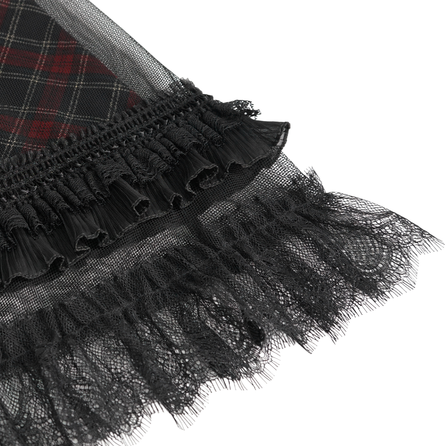 • In aged black fabric and lace • Spliced hem with a variety of fabrics and distributed in an offset manner • Lace with spider web pattern • Dividing eyelets with decorative velvet lacing •...