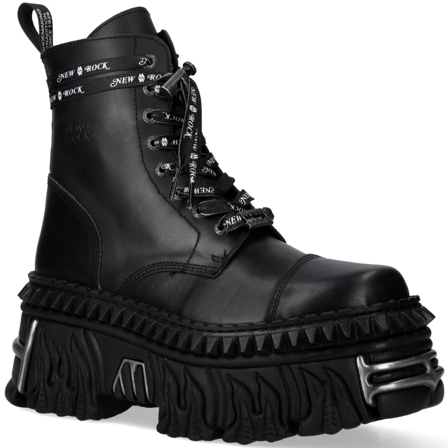 NEW ROCK METALLIC FIRE COLLECTION • Comfort Plus System • Natural rubber soles • Removable and anatomic insoles • Comfort Last • Fire Soles • Exclusive hand-finishing By New Rock...