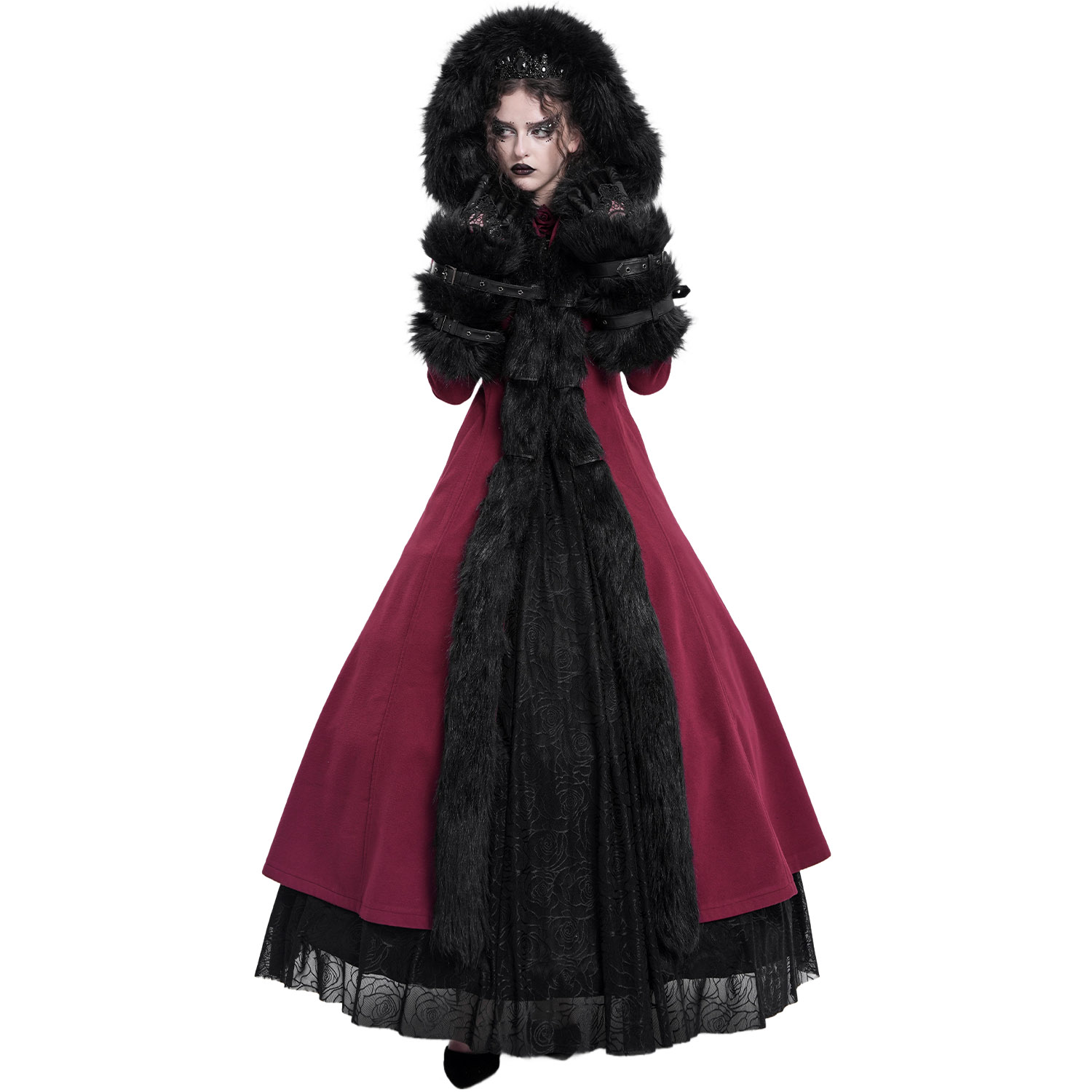 Elegant long hooded winter coat in Gothic Lolita style
