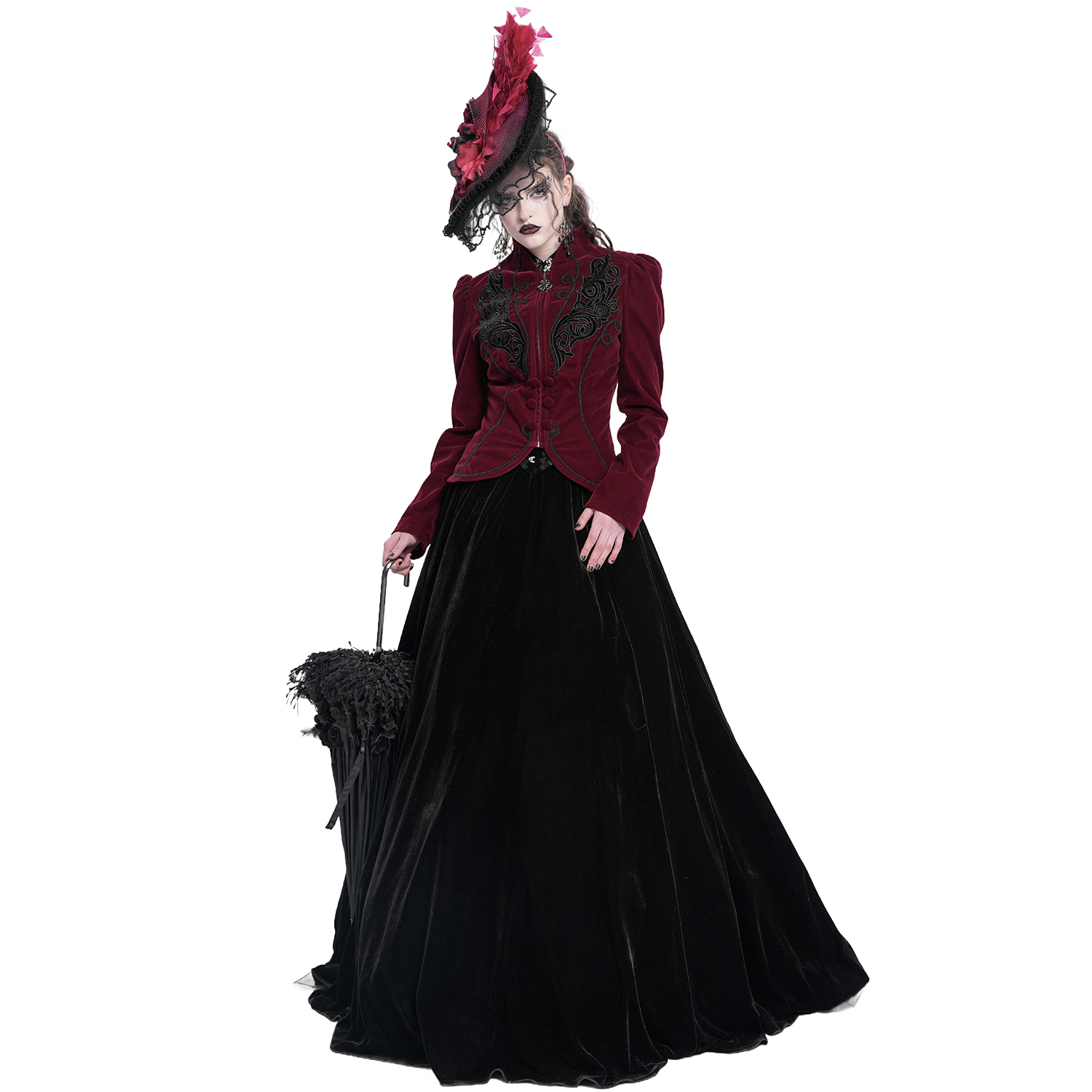 Victorian Gothic inspired burgundy velvet fitted jacket
