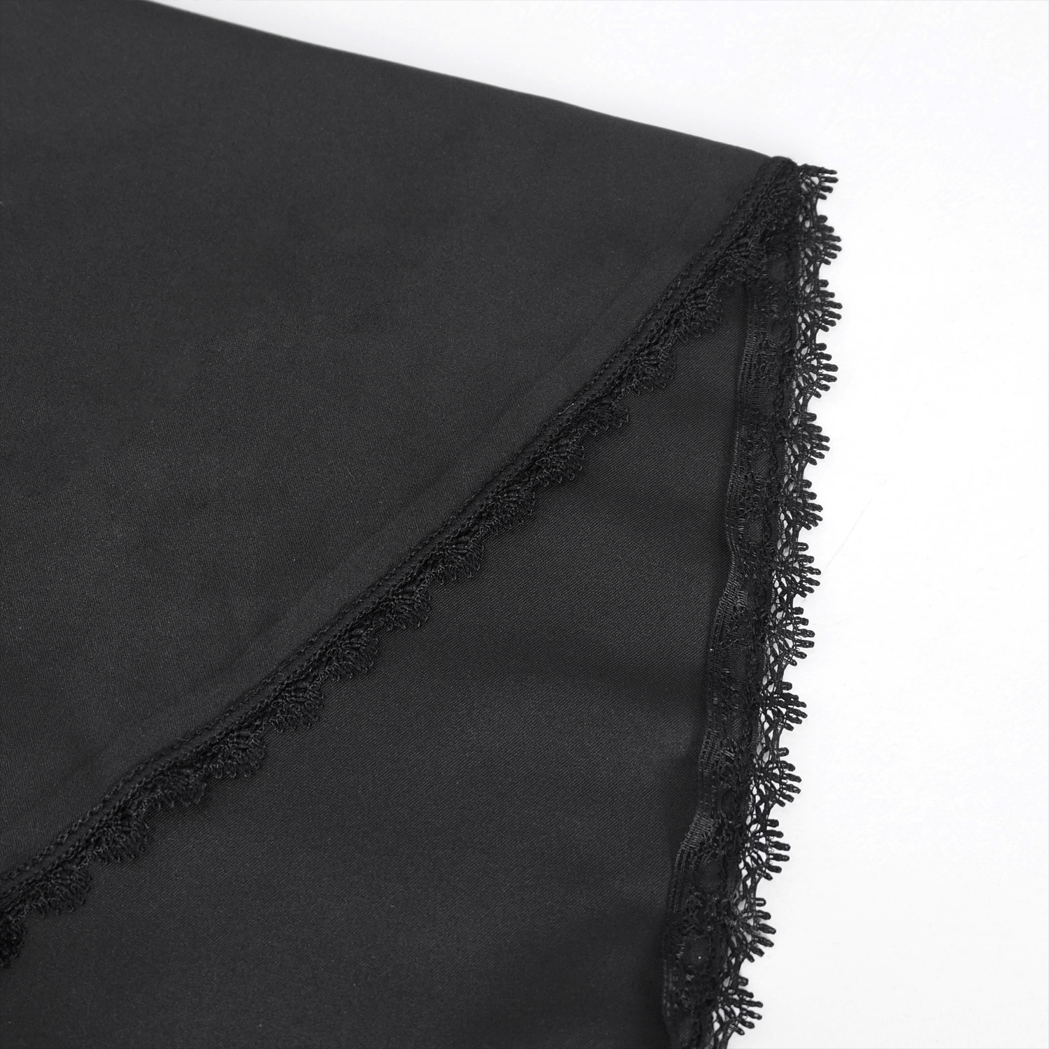 • Embroidered black tulle edges • Solid black lining • Arm openings on each side • Gathered lace and black stones on the top of the garment • Closes with a black velvet ribbon for a perfect fit...