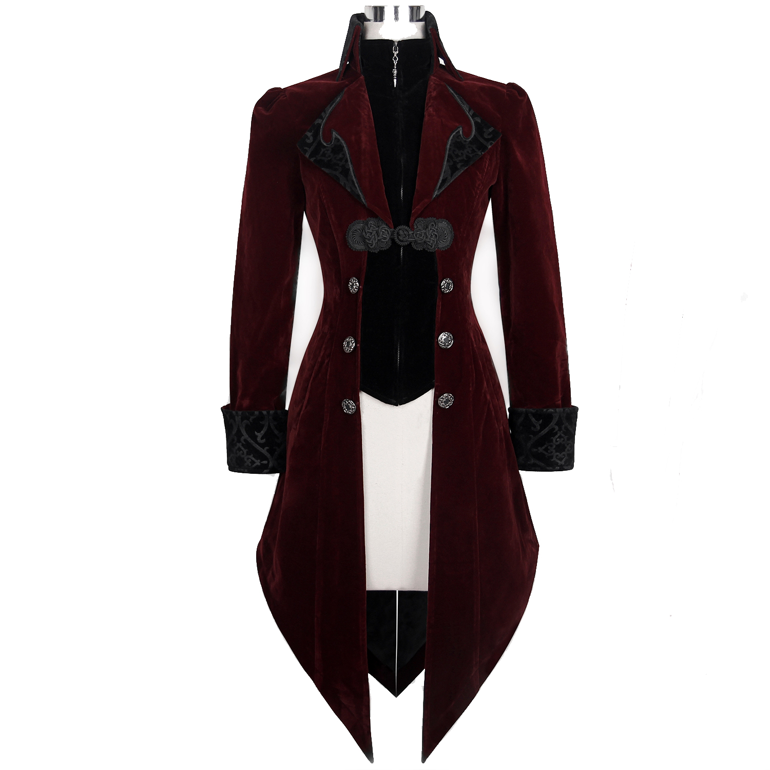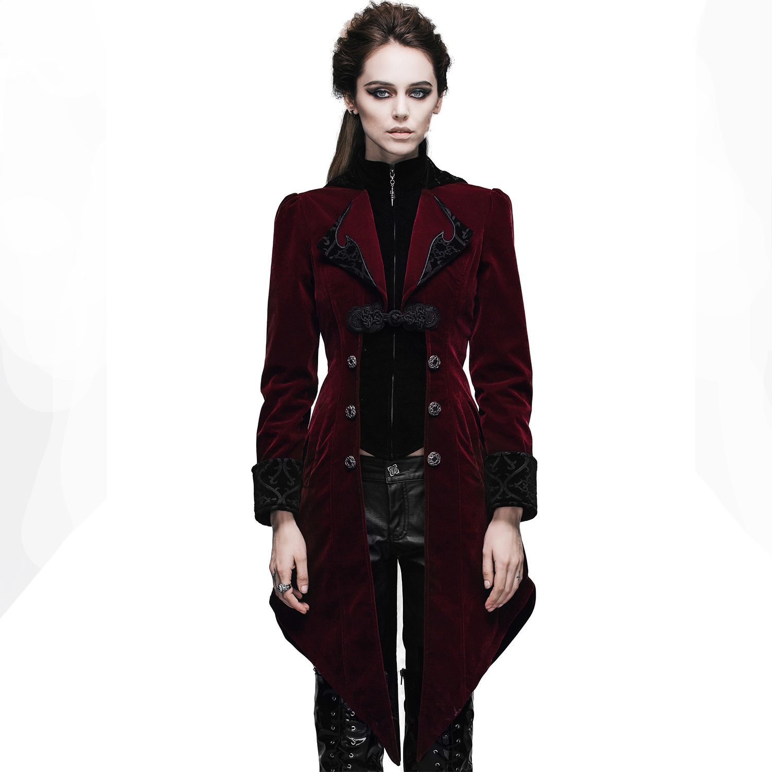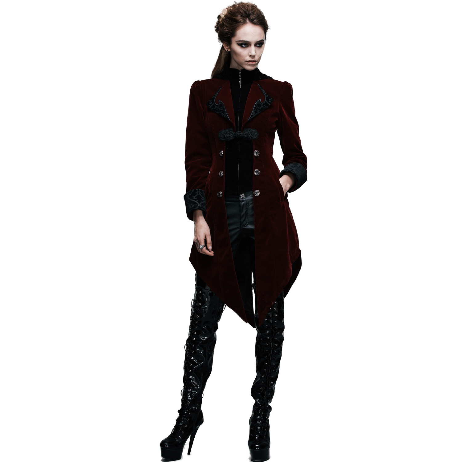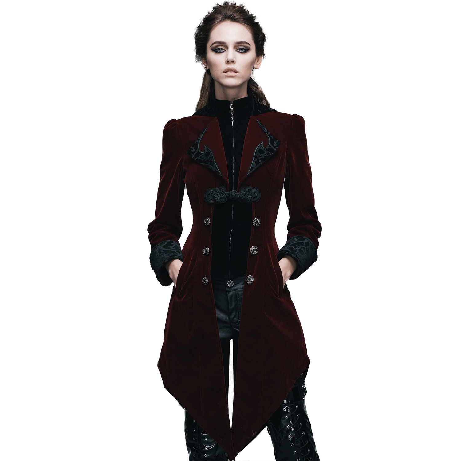 • Elaborately designed double breasted Gothic Industrial style women's Jacket-Coat • 2 outfits in one garment: jacket & long coat! • To wear it as a short jacket- unzip the lower part of...