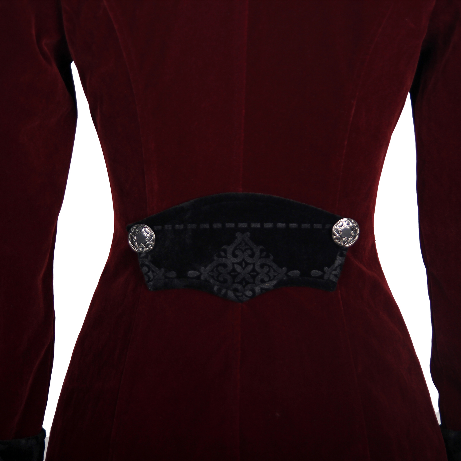 • In dense, quality velvet • Bat collar • The shoulder and collar seams are adorned with exquisite lace and pyramid studs, providing rich details • Lace panel highlighting the layering of...