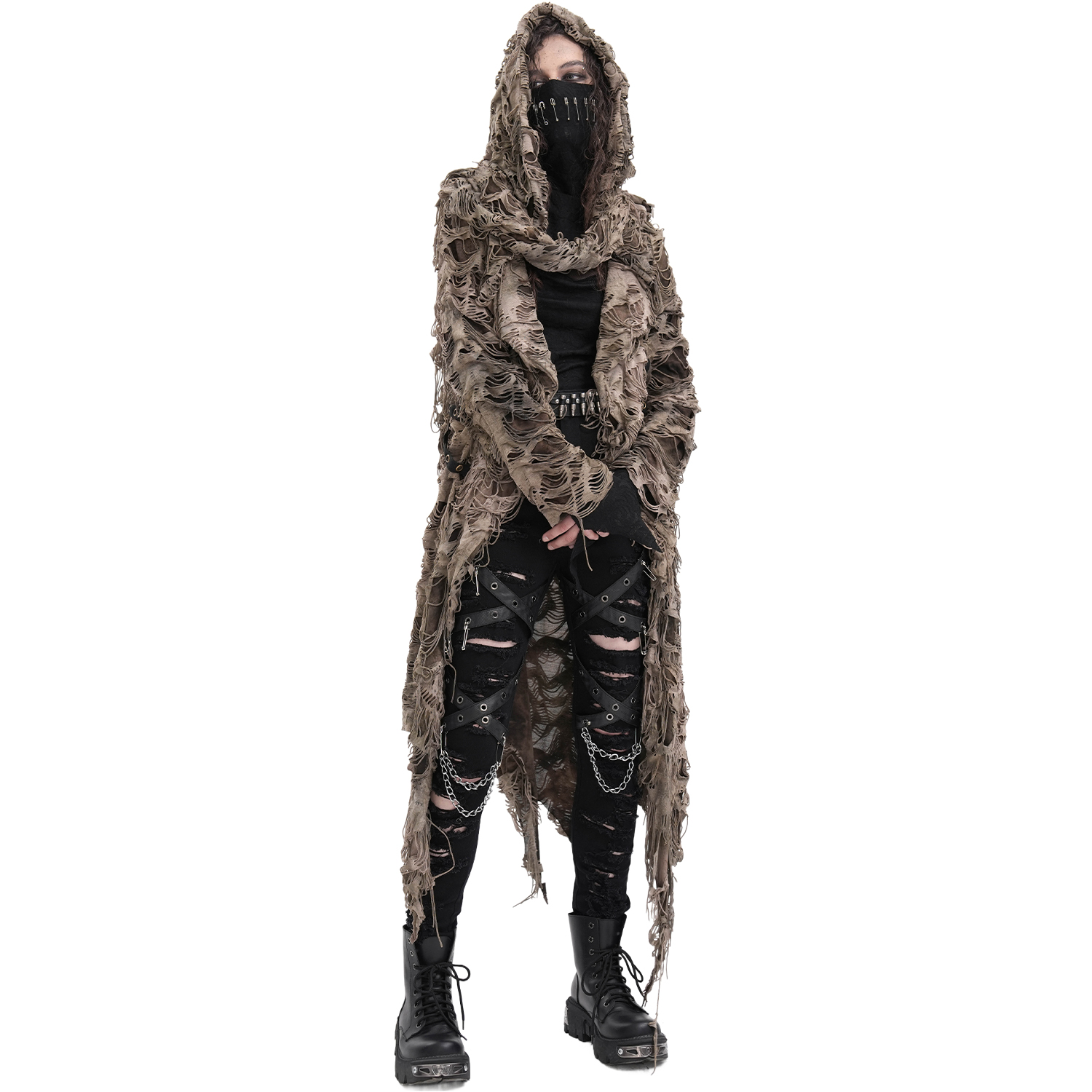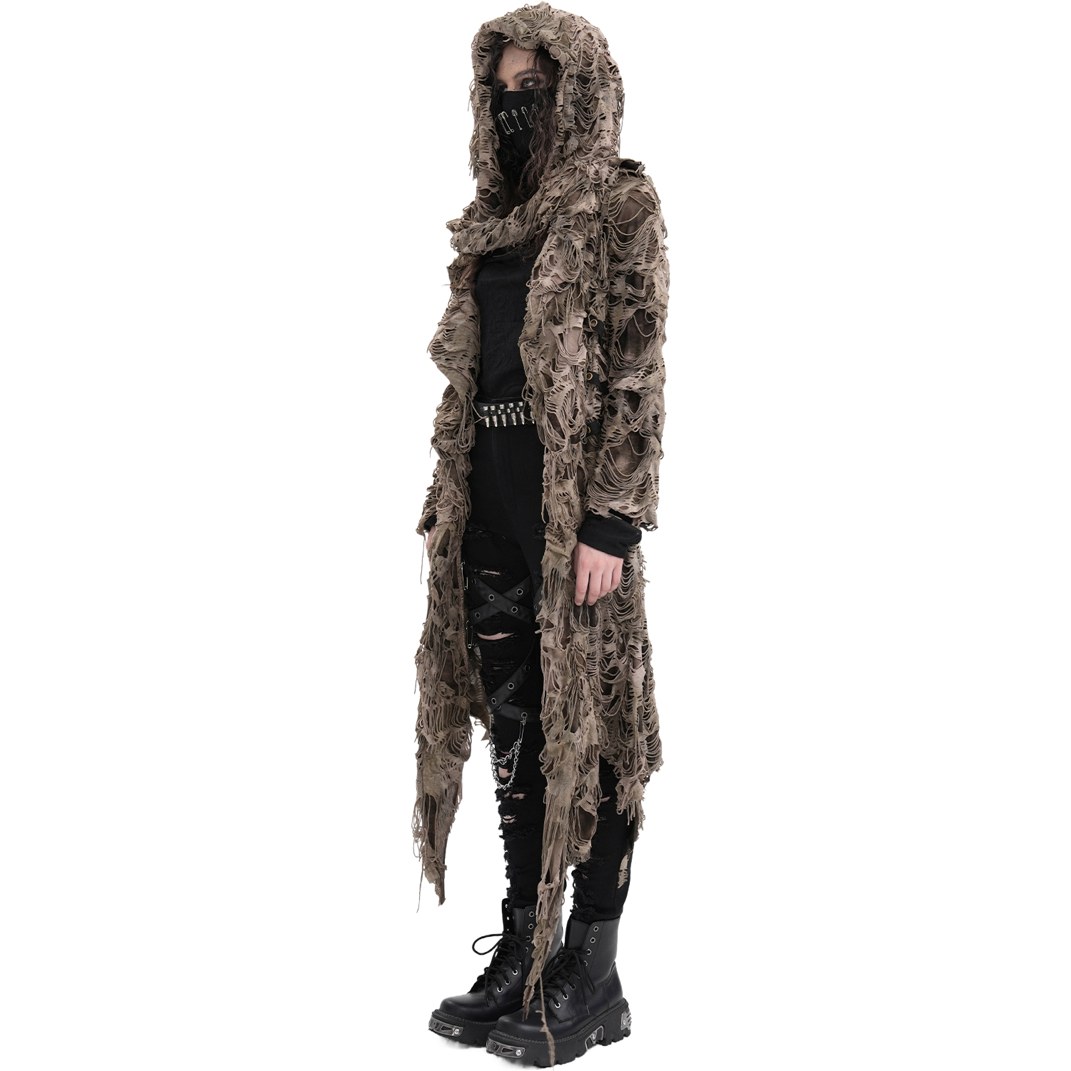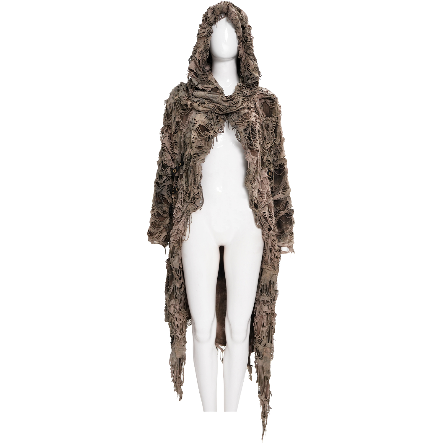 Long romantic gothic style coat • Made from thick, comfortable combed fabric • Lining made of cashmere and cotton particles • Hood and cuffs lined with soft black artificial fur • Decoration of a...
