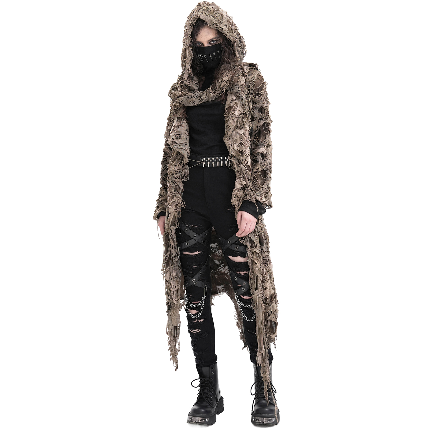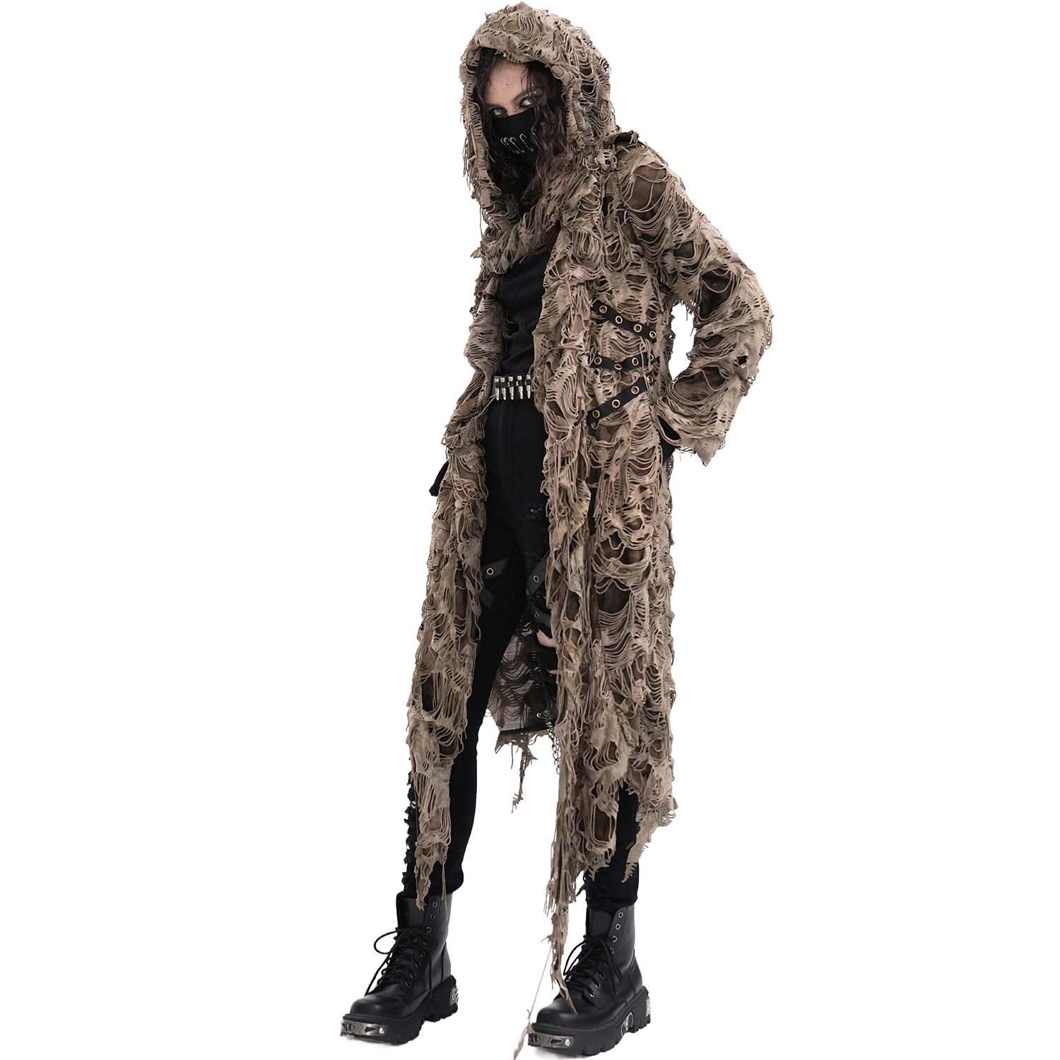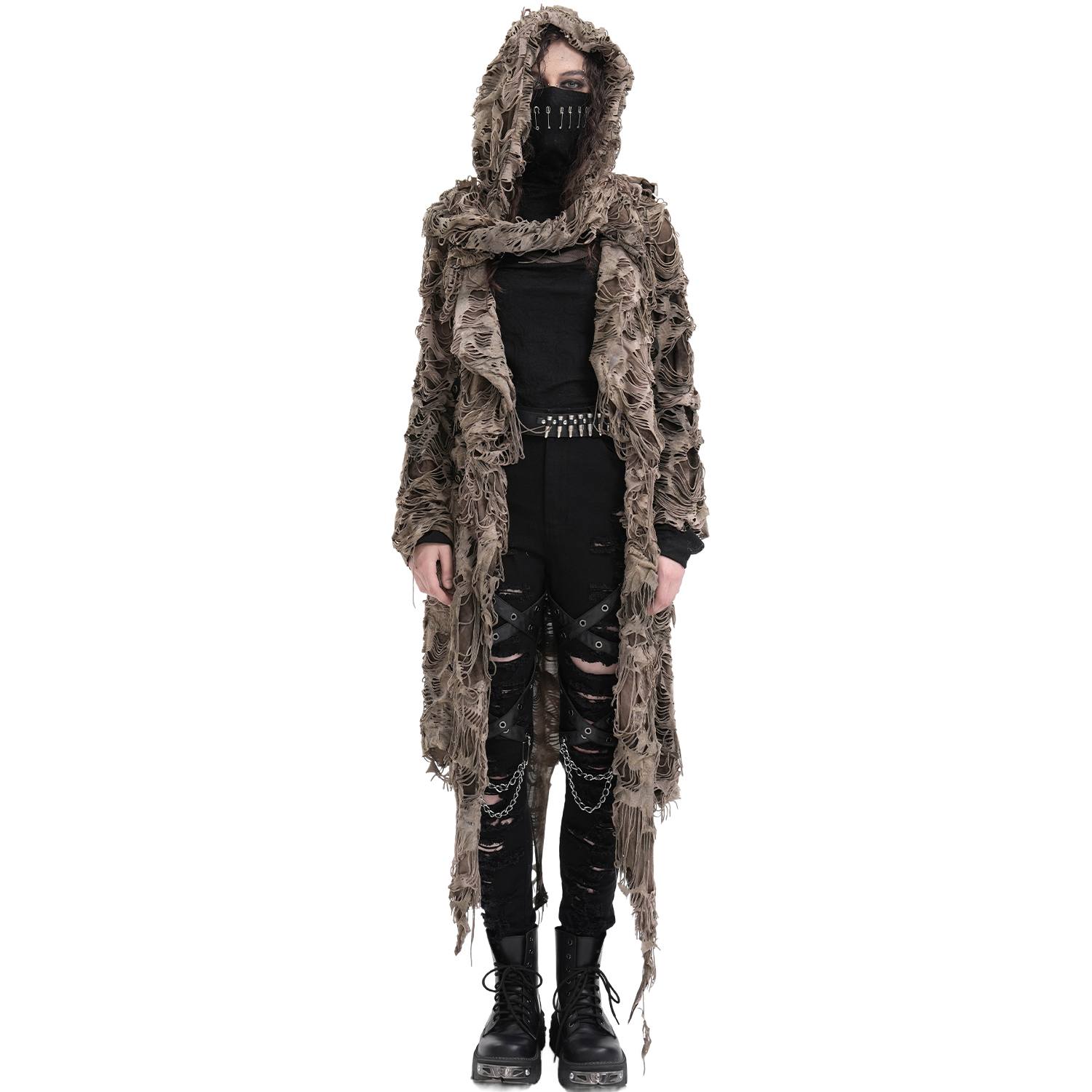 Long romantic gothic style coat • Made from thick, comfortable combed fabric • Lining made of cashmere and cotton particles • Hood and cuffs lined with soft black artificial fur • Decoration of a...