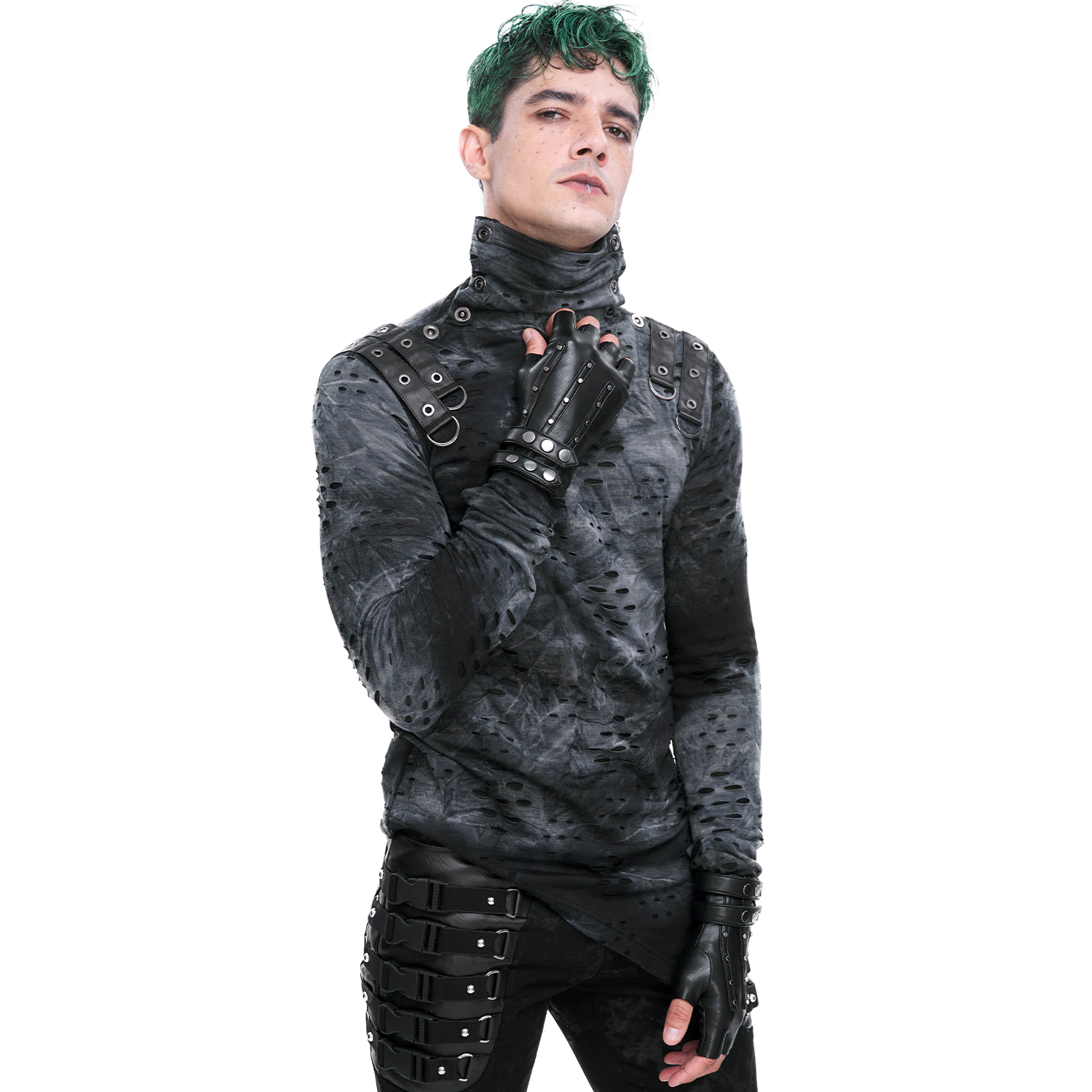 Long fingerless black knitted and faux leather gloves in Gothic Industrial style for men with synthetic leather straps with buckles and spikes. By Punk Rave SIZING CHART IN CENTIMETERS...