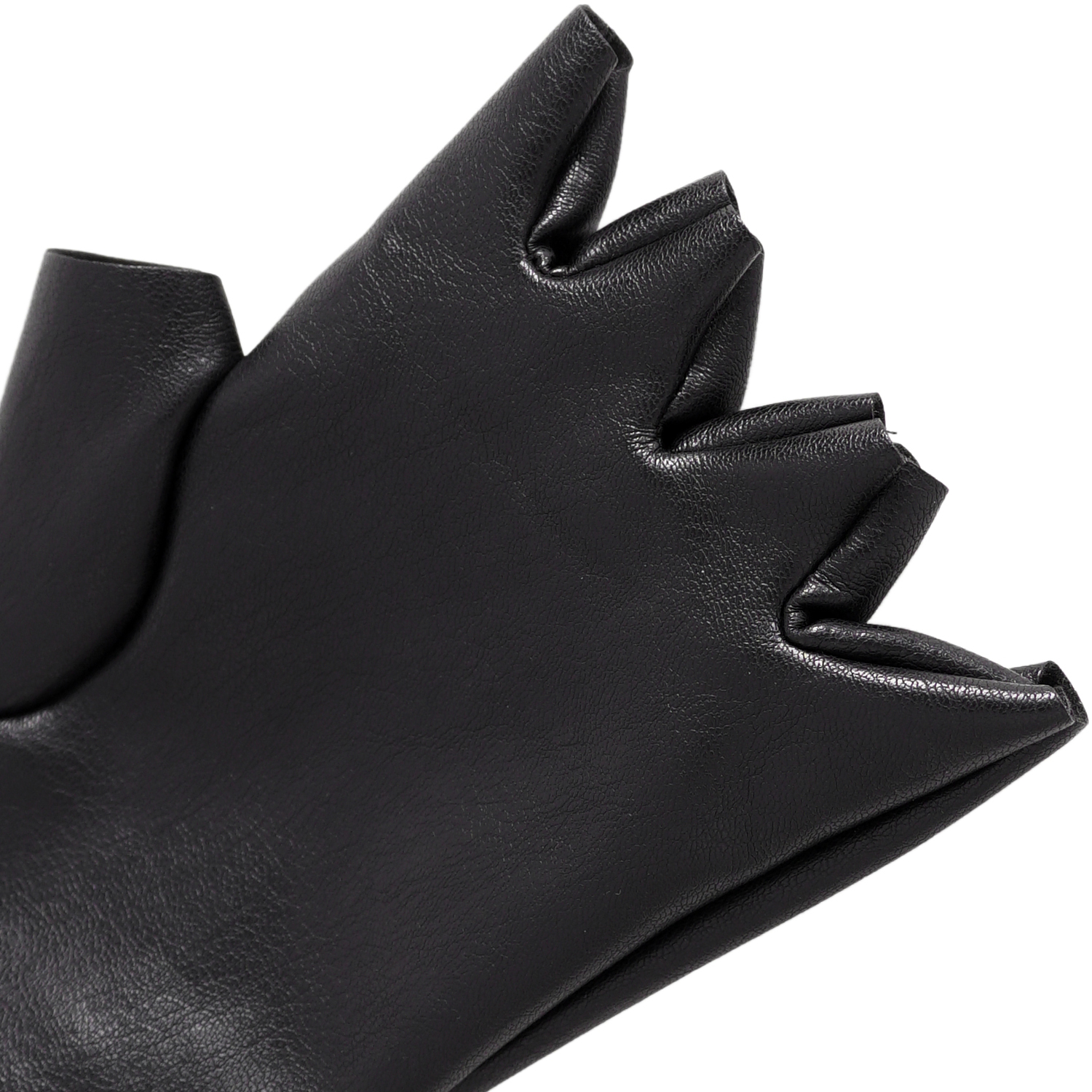 • In black varnished PU imitation leather • Shiny and slightly stretchy • Half-palm design • Conical black metal spikes on the back of the hands • Supplied as a pair • 55% PU Leatherette, 45%...