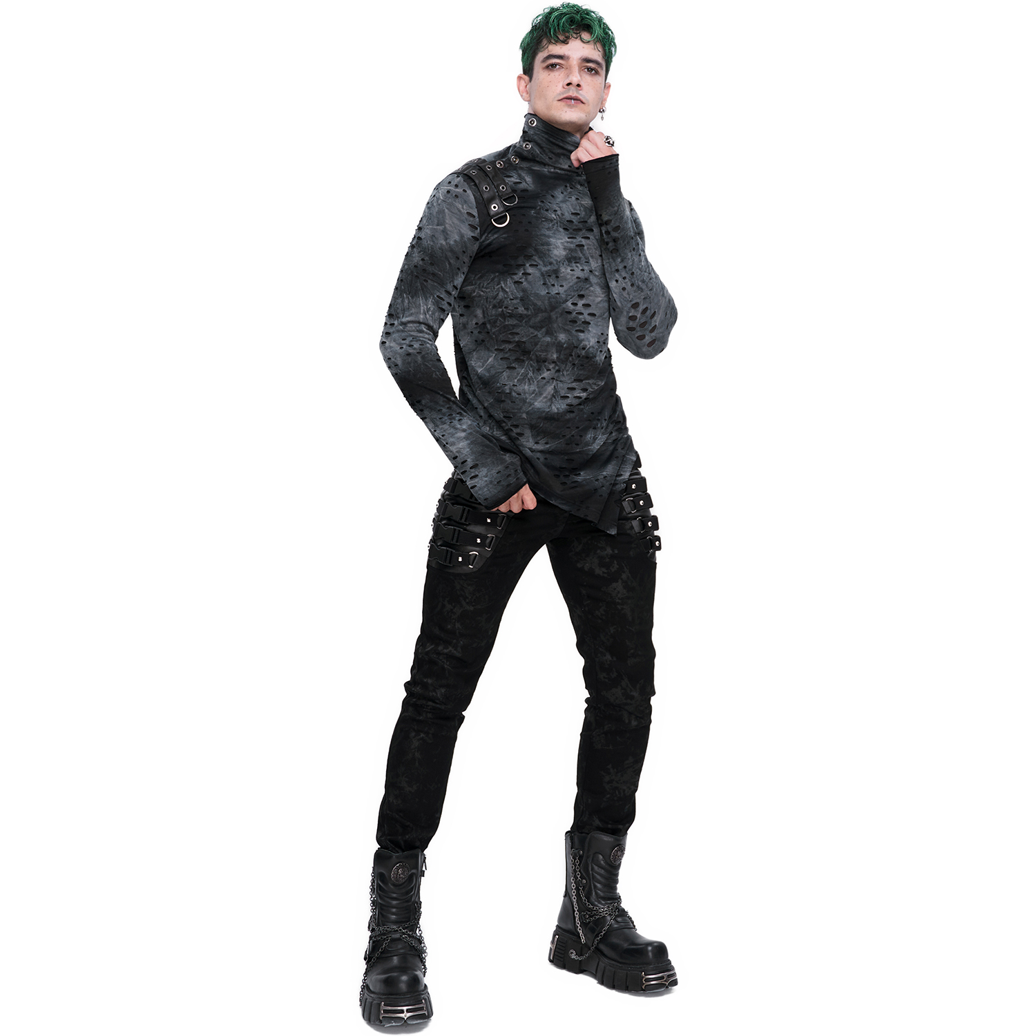 • In torn tie-dye fabric • High collar • Long sleeves with thumb loops • Asymmetrical beveled hem • The side of the collar can be opened • Straps with D-rings on both shoulders • Suitable for daily...
