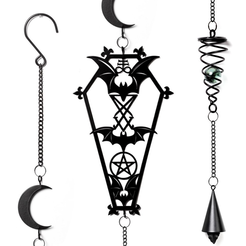 • Coffin, bats, crescent moon and pentagram create this divine decoration
