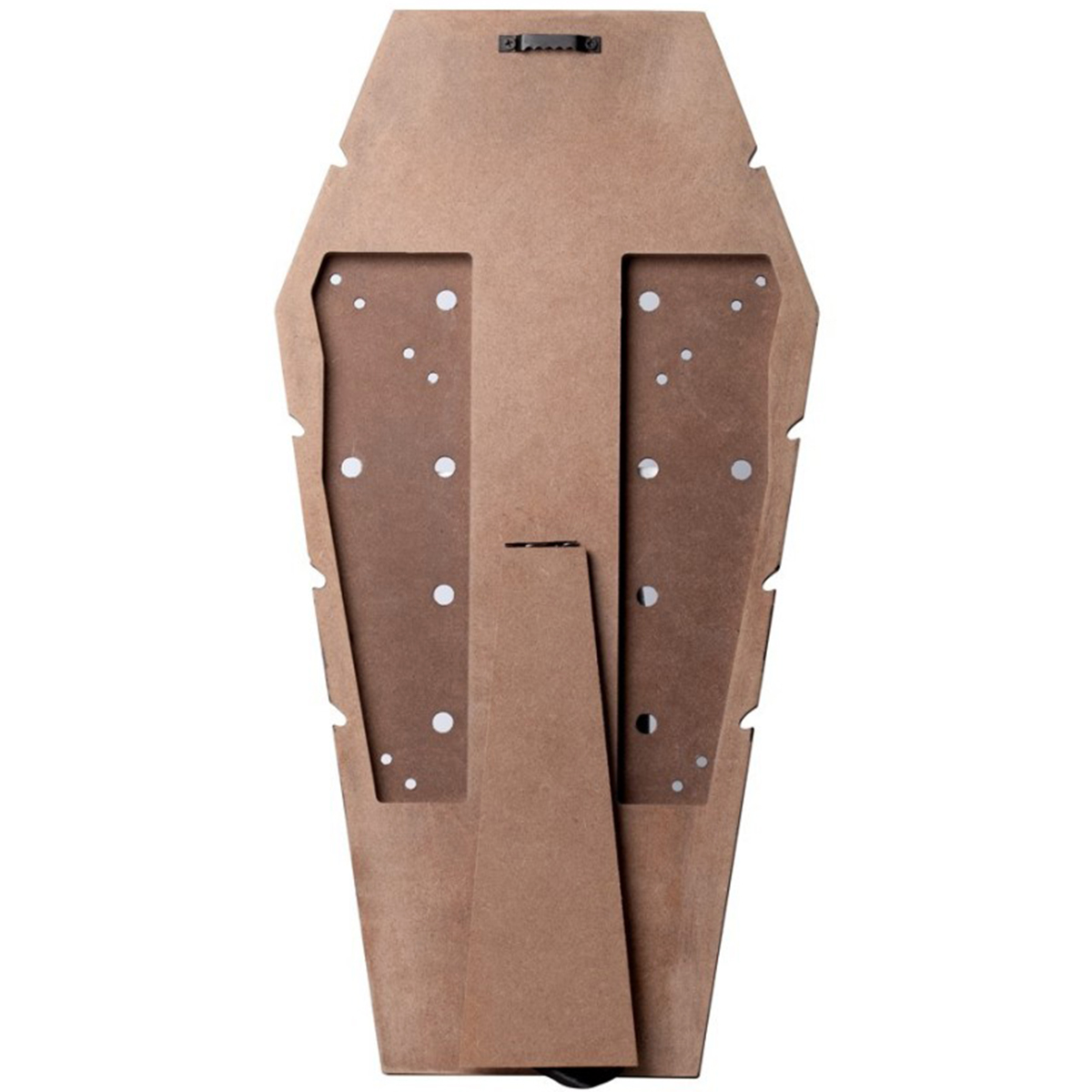 • Shape & Finish: Coffin-shaped, black painted MDF
