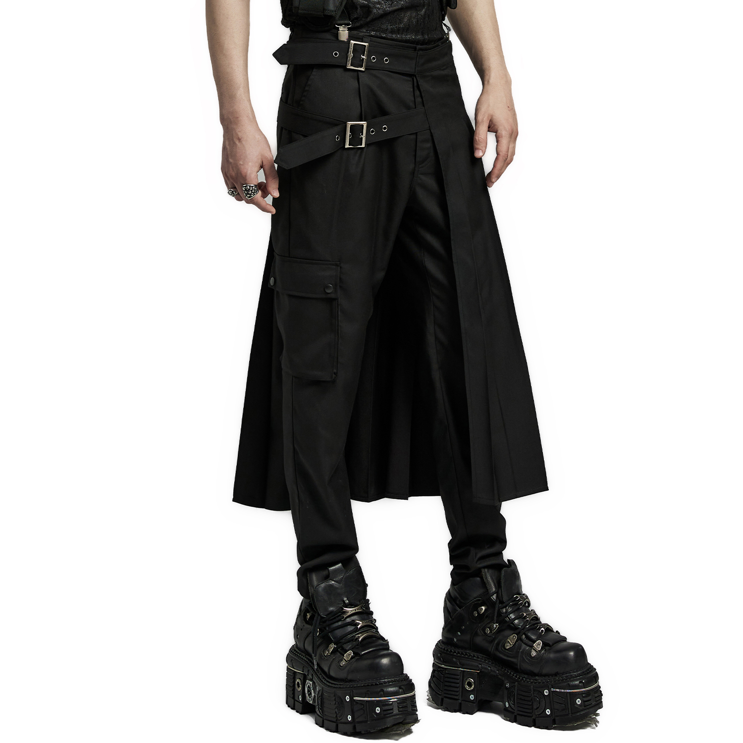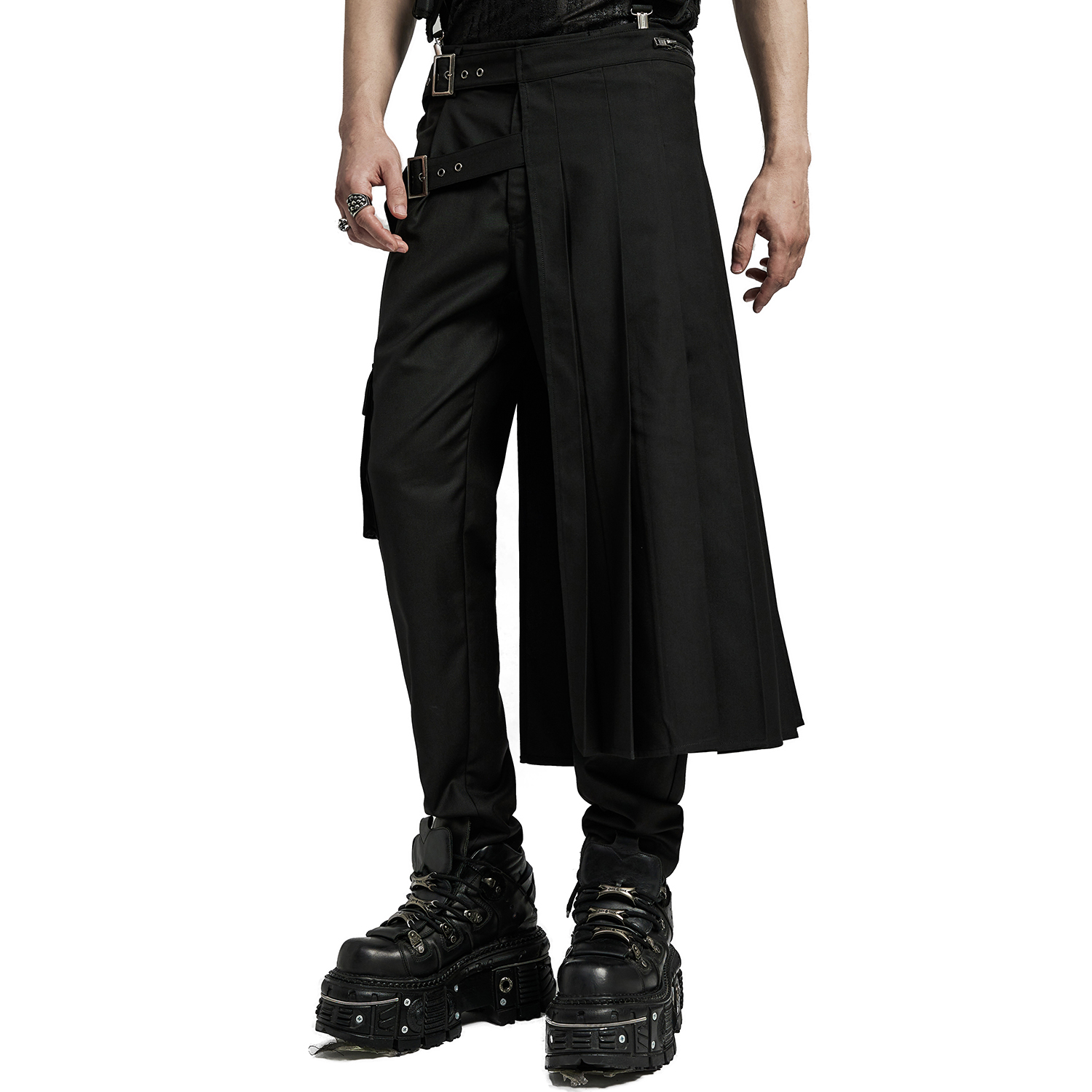 • Asymmetrical pleated kilt, can be easily paired with trousers