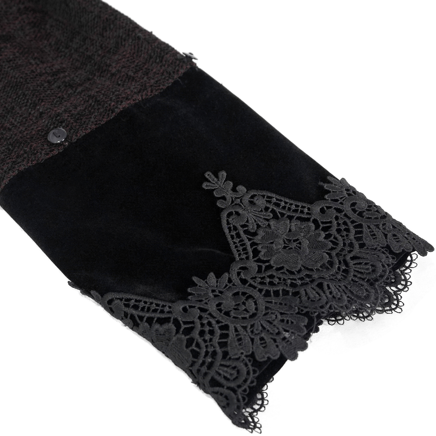 • Two pockets with black velvet trim