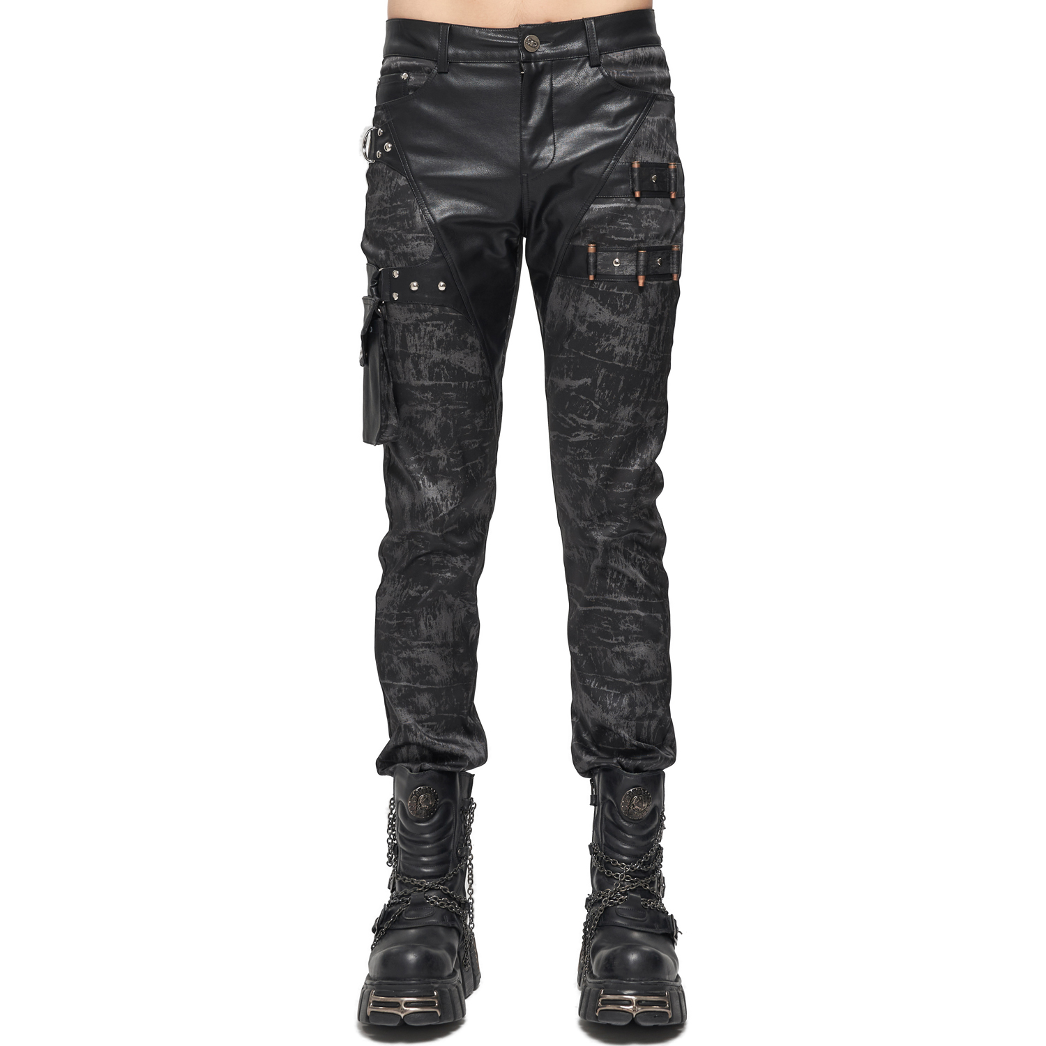 Men's faux leather skinny pants. • Made from elastic, coarse-textured faux leather fabric • Classic skinny fit • Zipper and button on the front • Suitable for daily use • 100% Synthetic Leather By...
