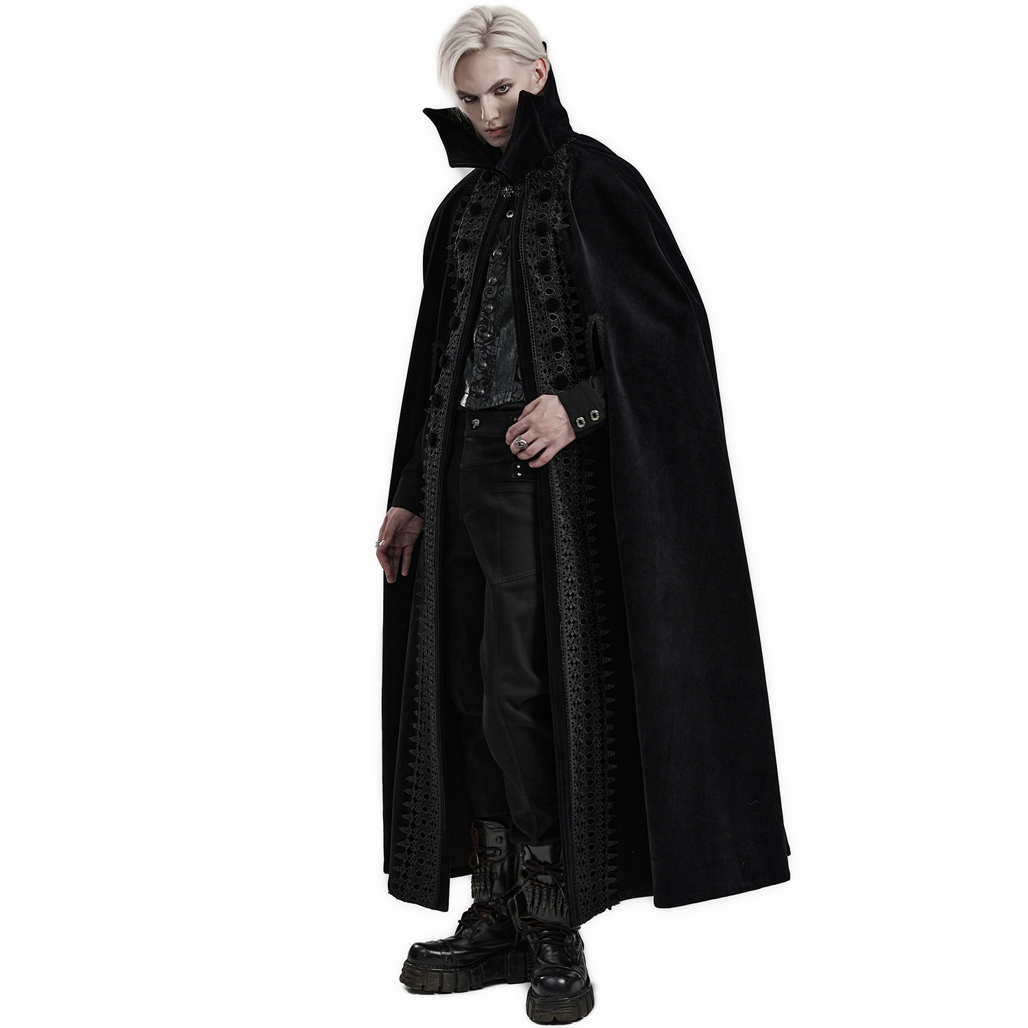 Gothic vampire style pants for men. • Black jacquard printed with floral patterns • Four pockets, two front and two behind • Metal zipper • Black lace belt • Embroidered front pockets on...