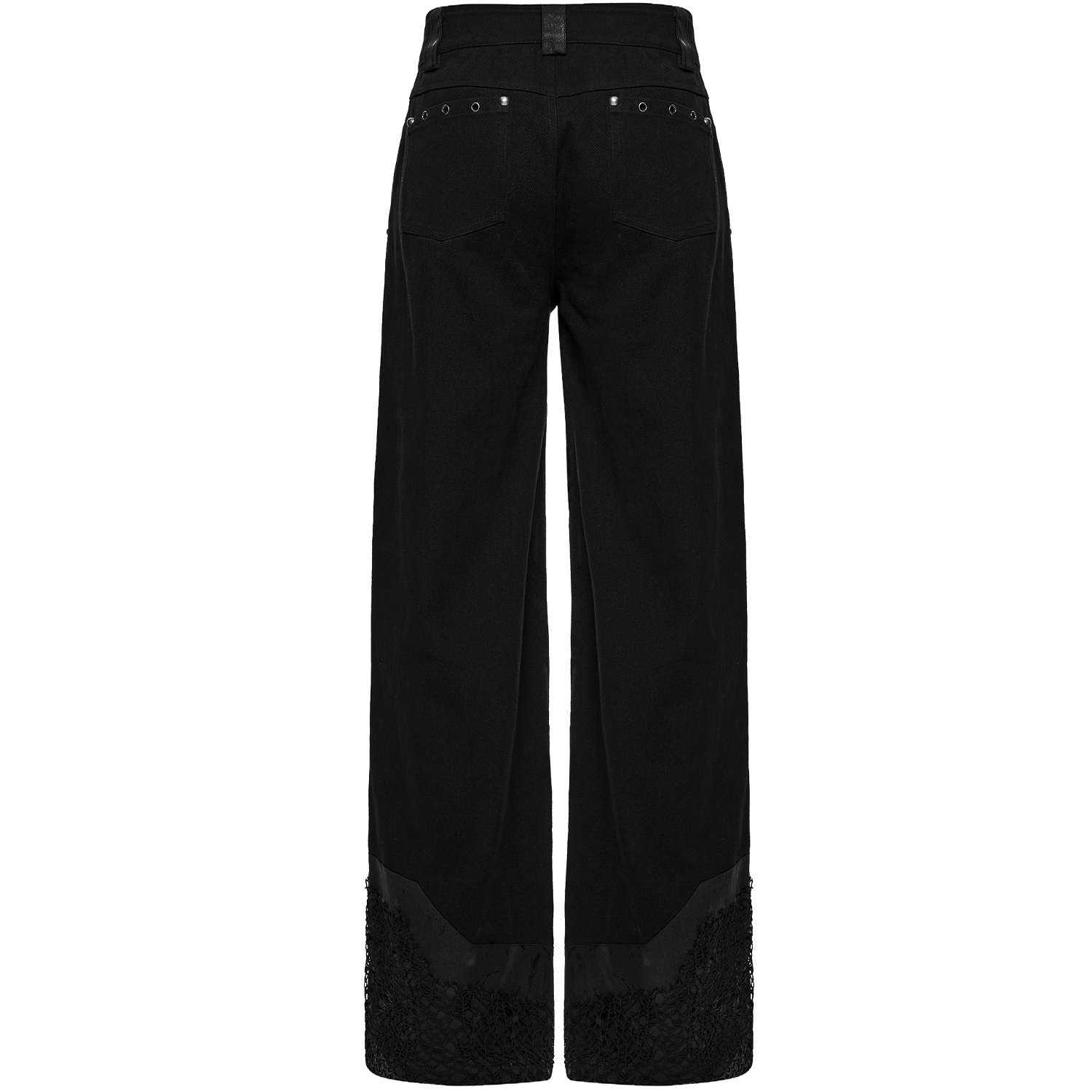 • In black twill • Slim fit • High waist with floral pattern • Two side patch pockets • Brocade fabric on the waist • Decorative lacing on the hips • Silver buckle at the back • Embroidered borders...
