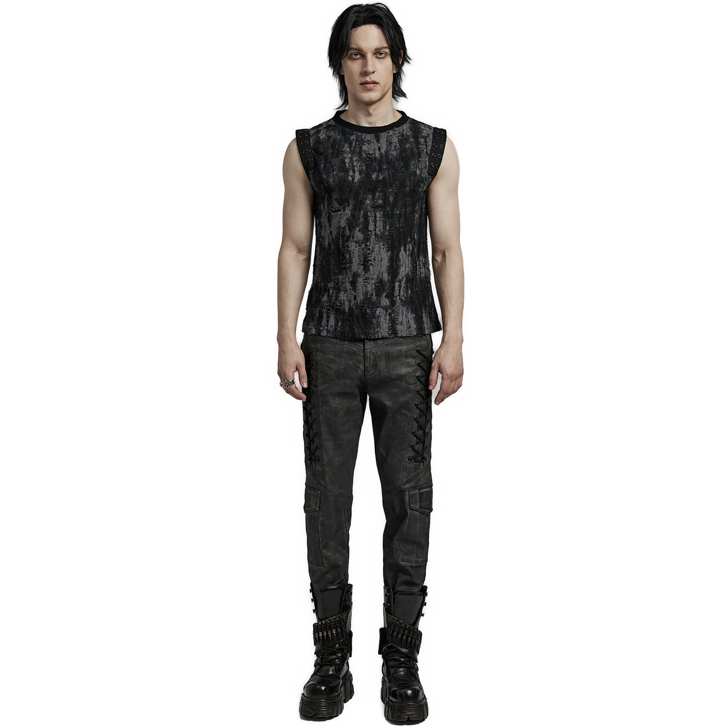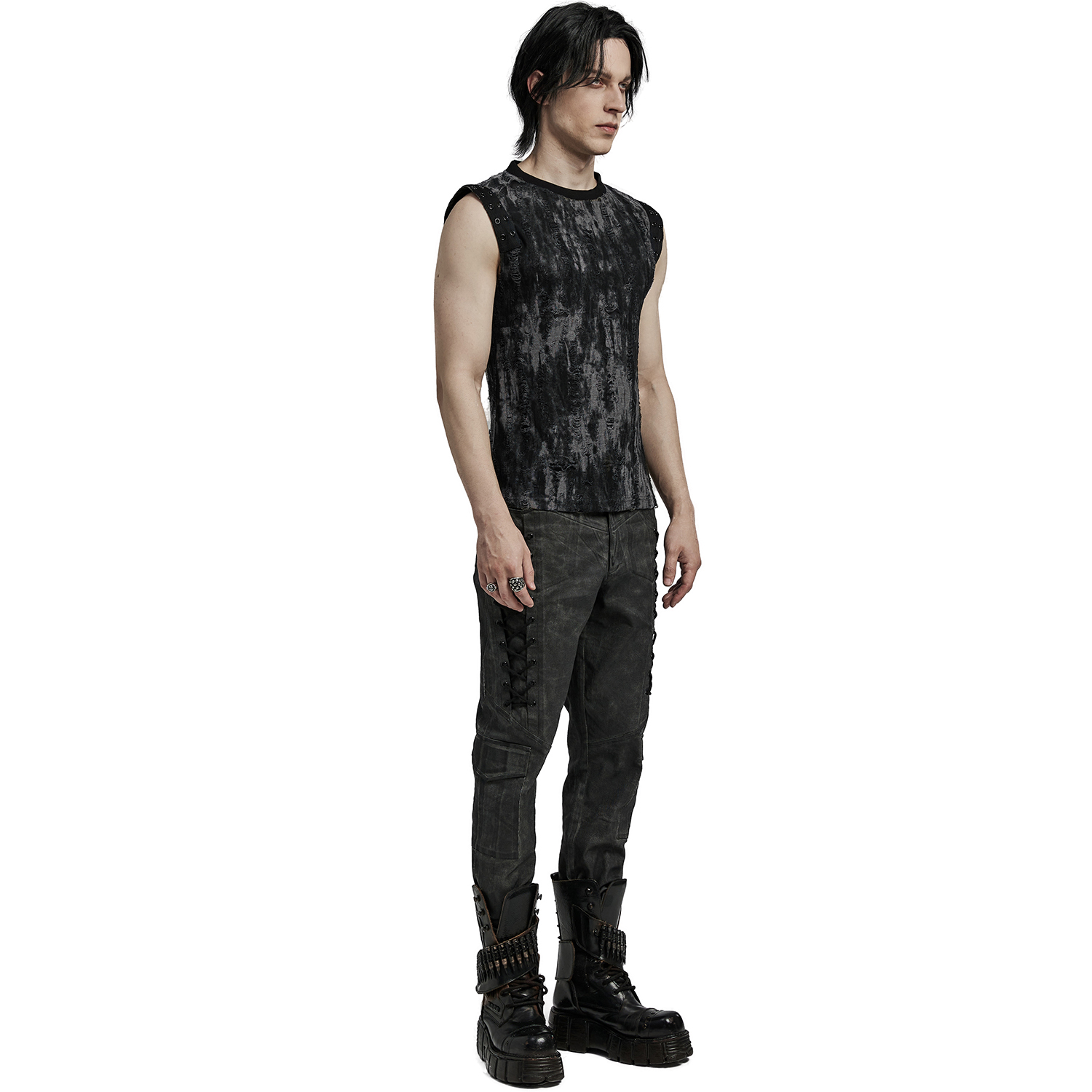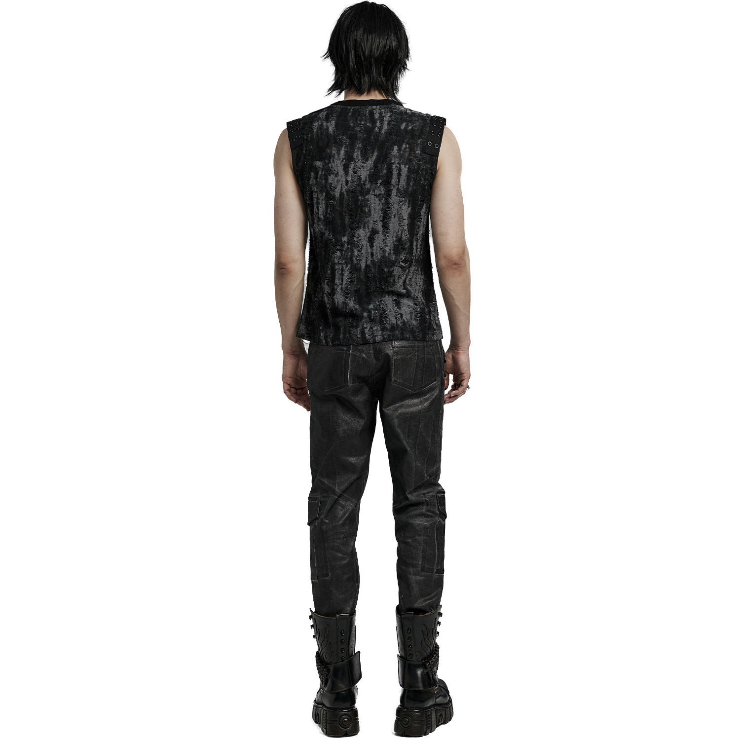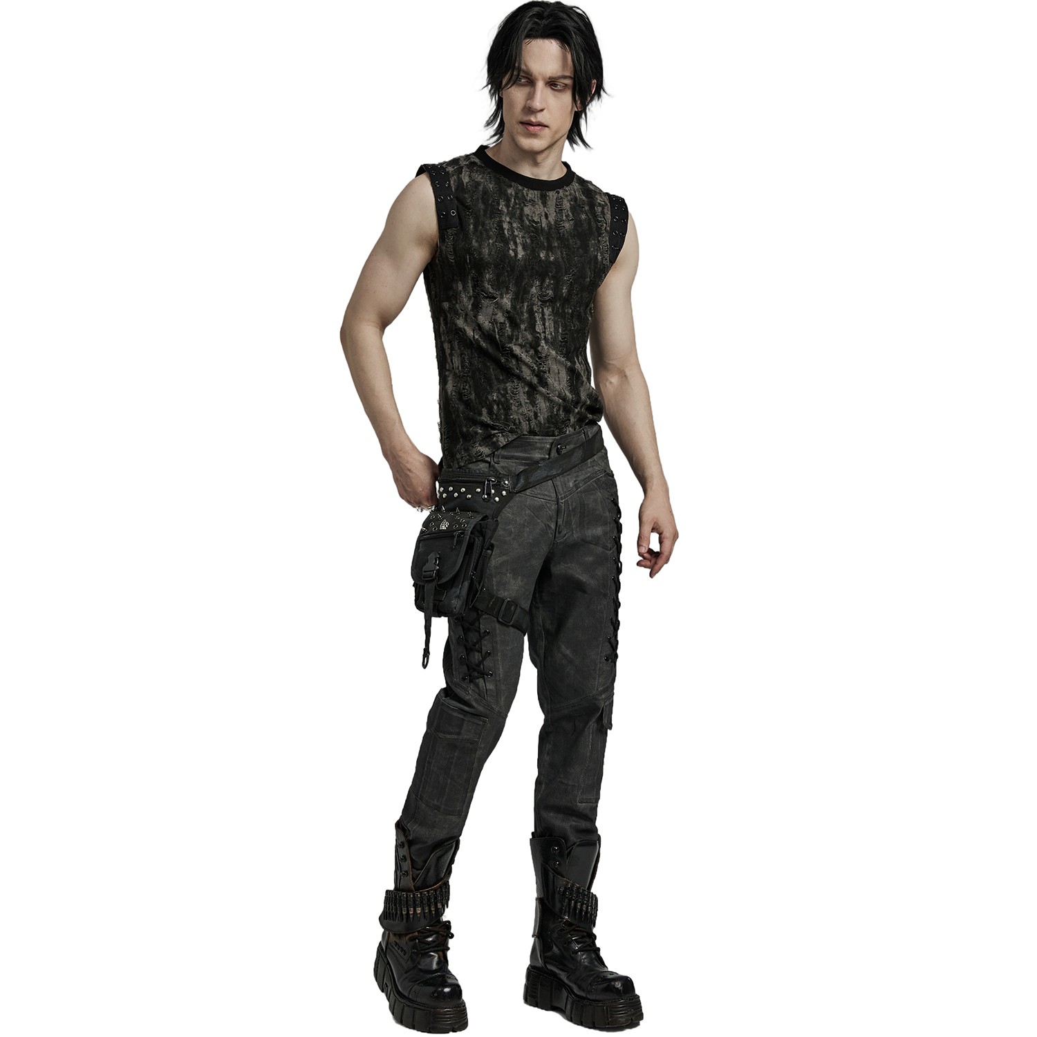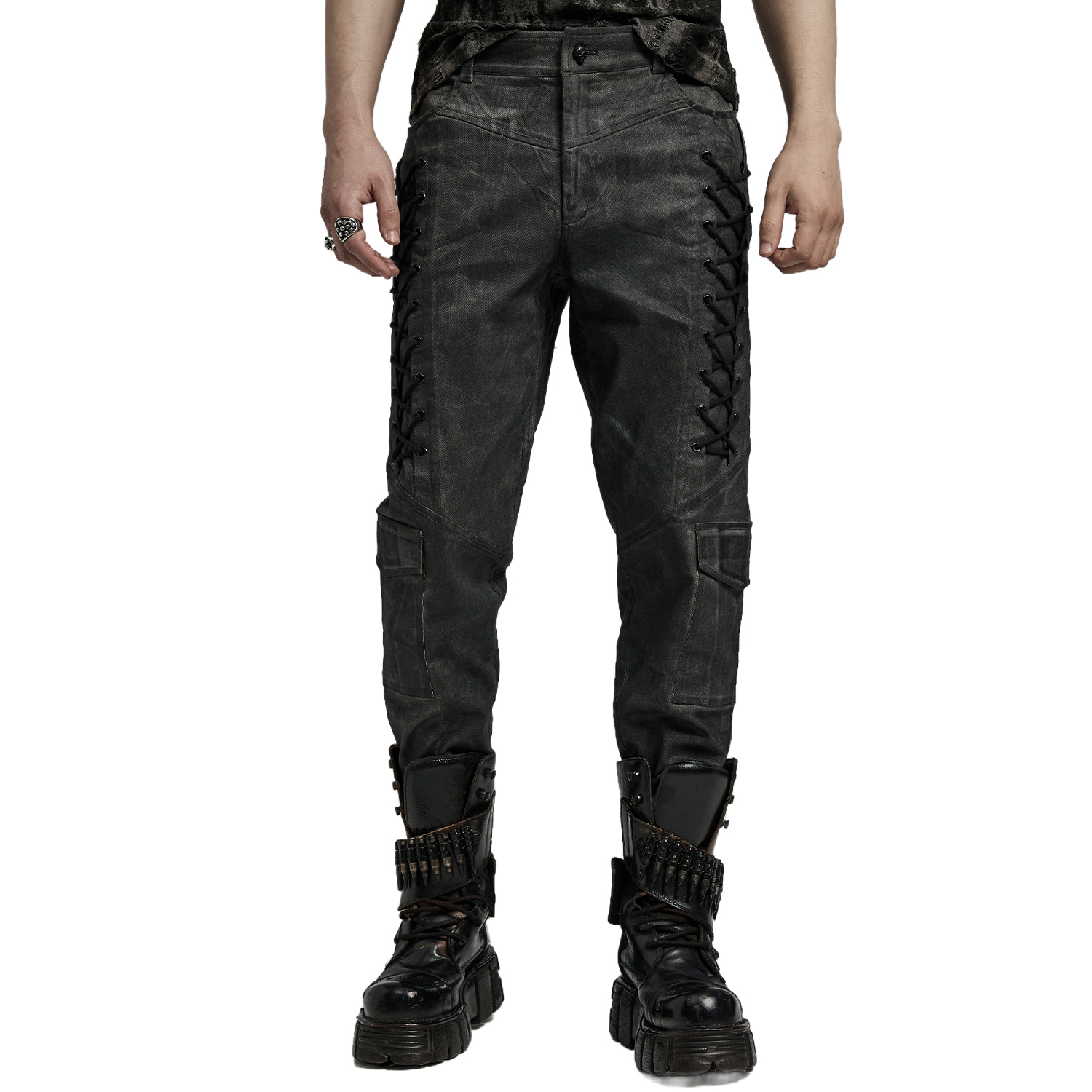 Post-apocalyptic gothic torn men's trousers • Stretch and durable denim • Two pockets plus a deep pocket at the front • Two back pockets • irregular stitches • Torn decorative fabric layers at the...