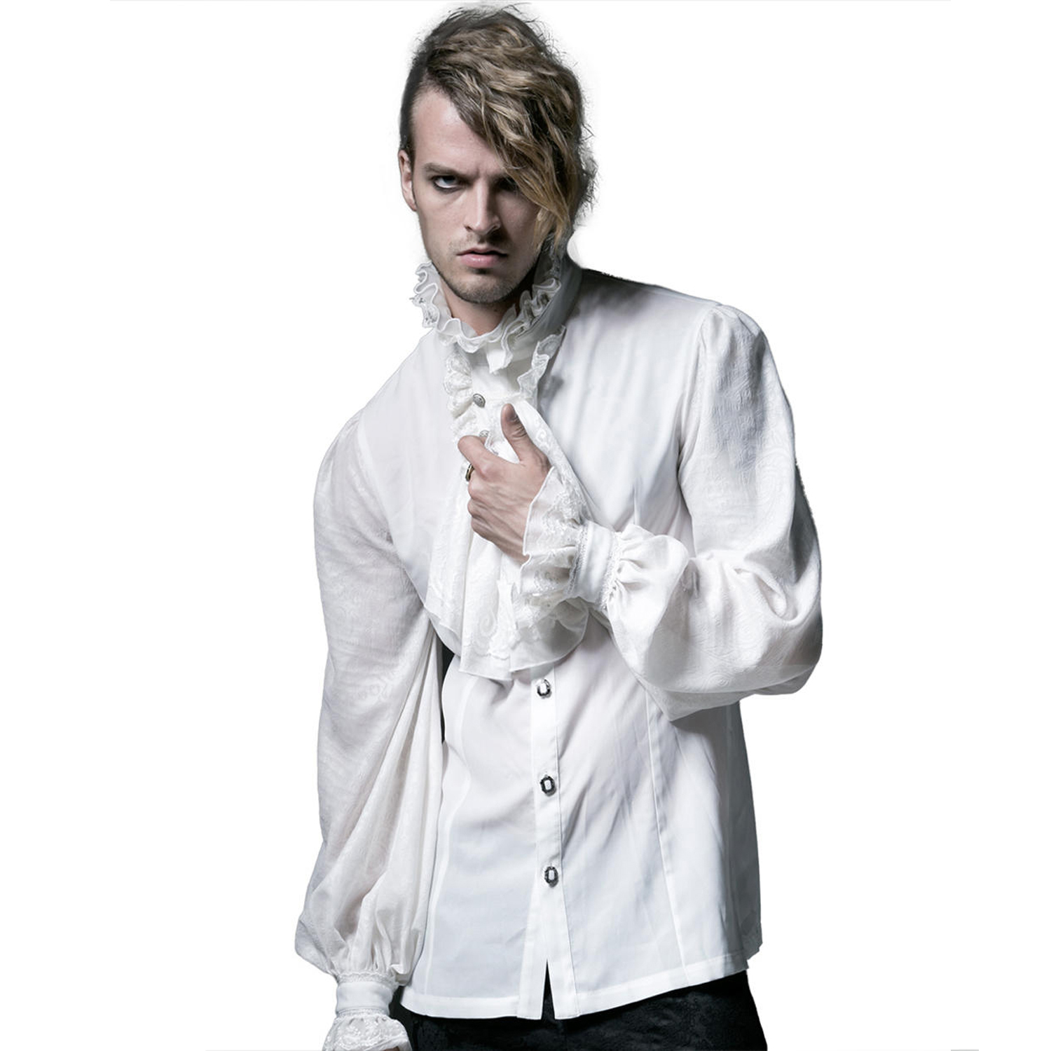 Victorian Gothic Aristocrat style men's white long-sleeved shirt with removable jabot.
