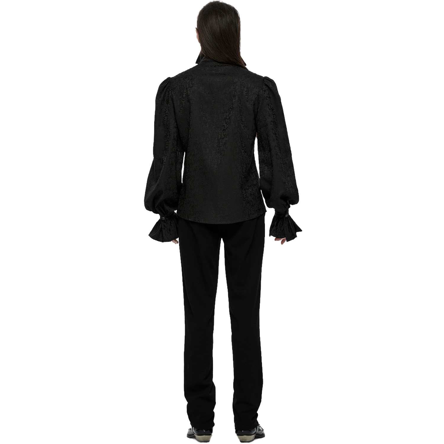 Victorian Gothic Aristocrat style men's white long-sleeved shirt with removable jabot. • Made of light thin fabric. • Elaborate jacquard damask print on sleeves and jabot. • 96% Polyester, 4%...