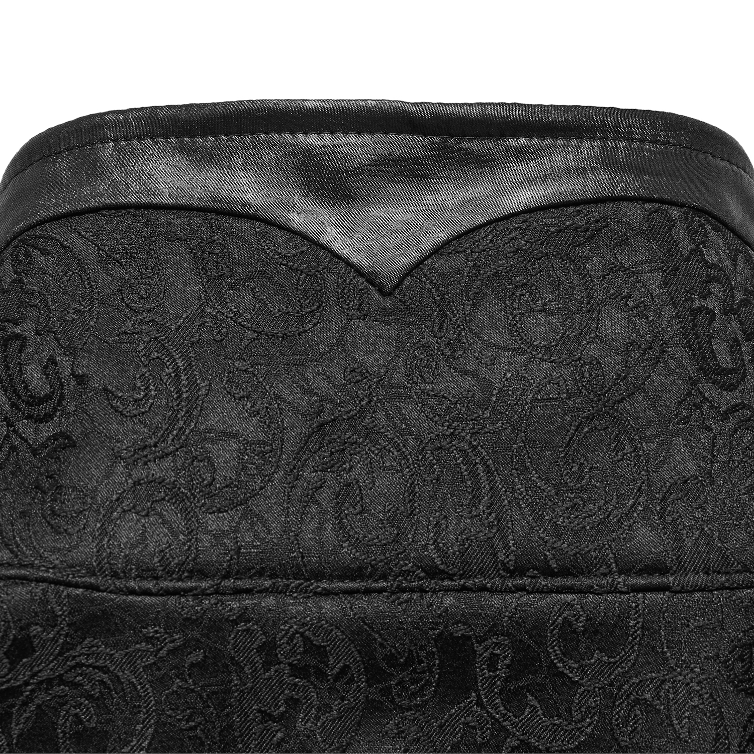 Great gothic men's shirt • Made in a black cotton blend with a Victorian damask pattern in brocade woven into an exclusive neo-gothic design. • Pointed asymmetric hem • Mandarin style collar...