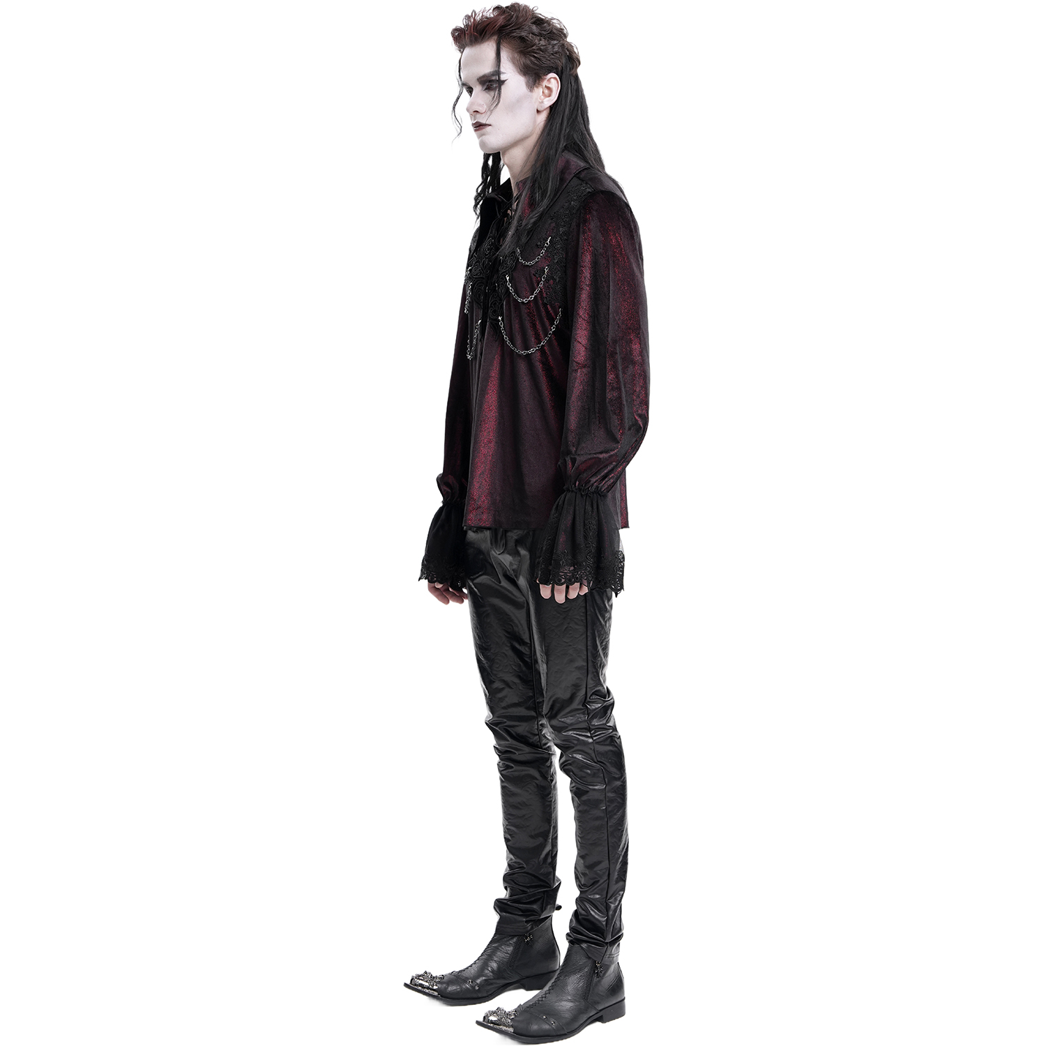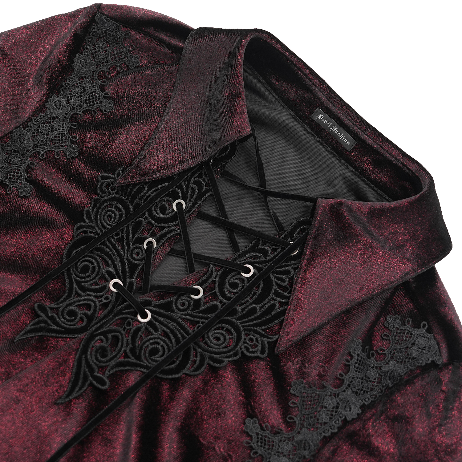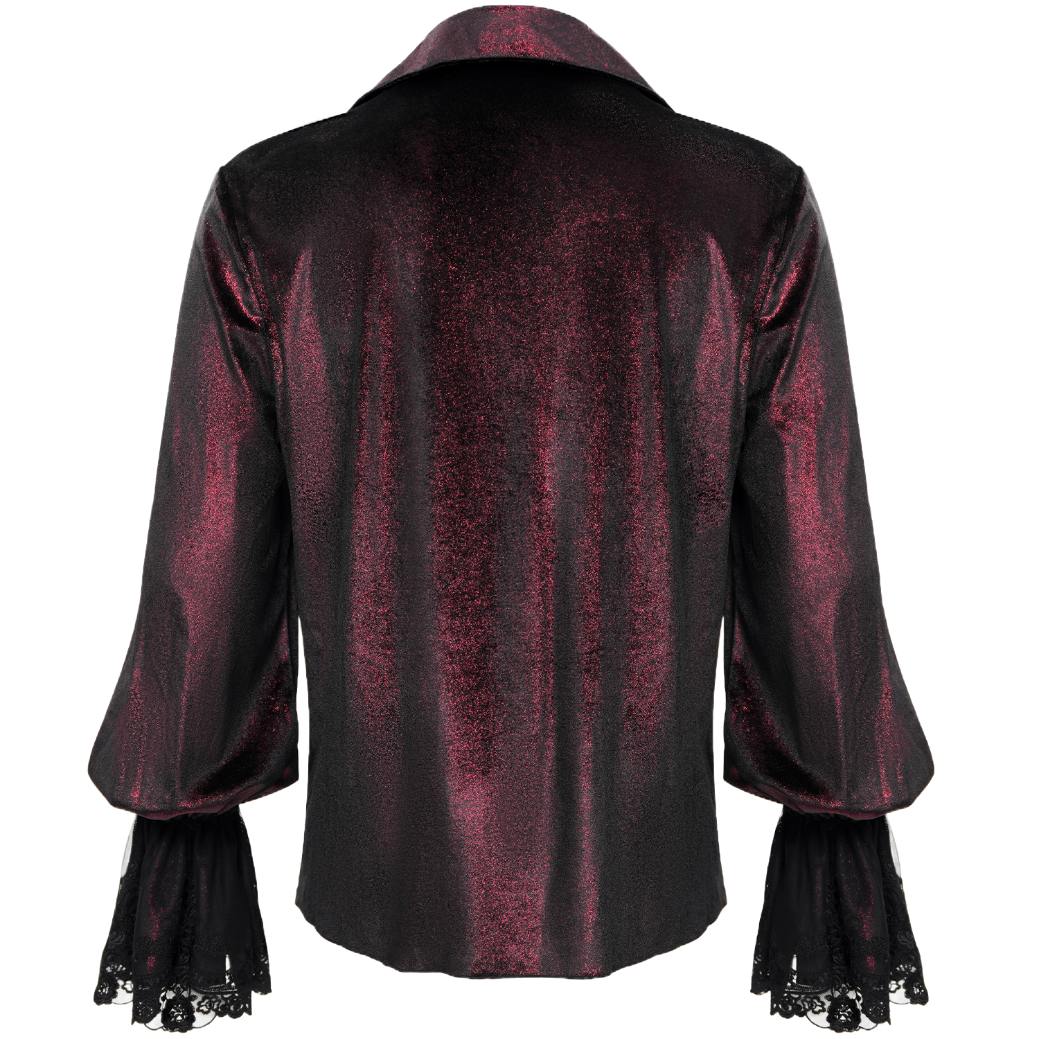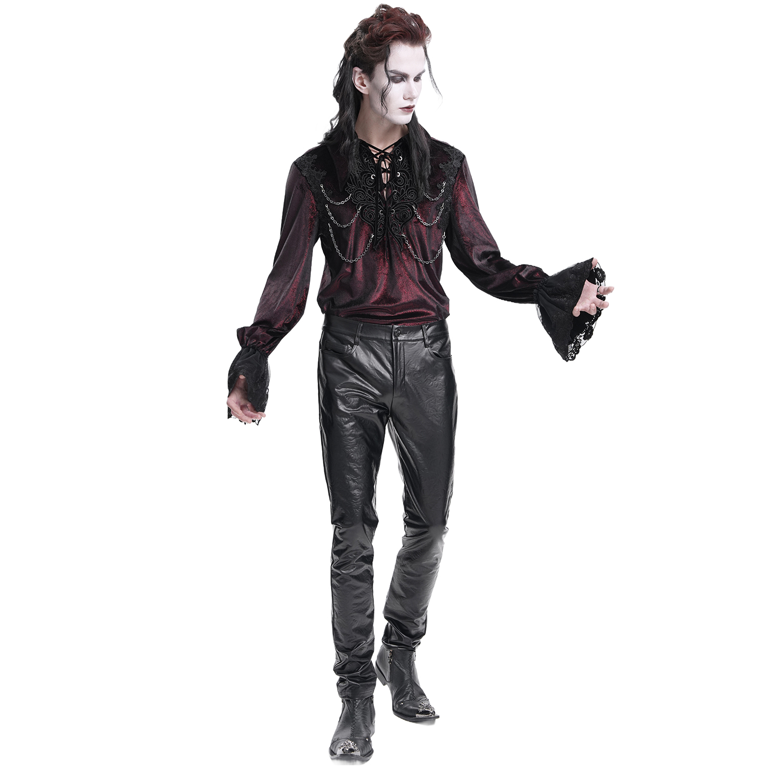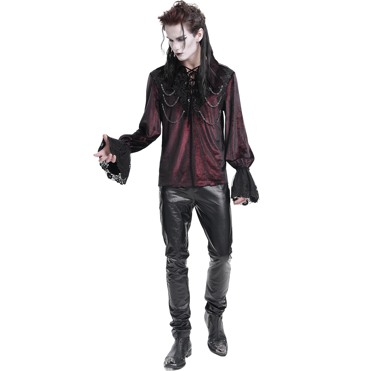 Men's Victorian Gothic Style Black Shirt • Embossed buttons in dark silver color • Cuffs edged with lace • High collar edged with ruffled lace • Embroidery on each side on the front • Also...