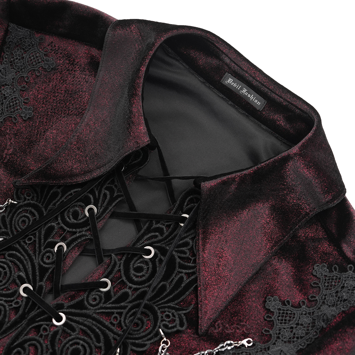 Gorgeous fitted gothic shirt for men. • Black velvet with a brocade printed pattern • Dark original dark gothic design • Slim fit shirt with mandarin style collar and black button closure with...