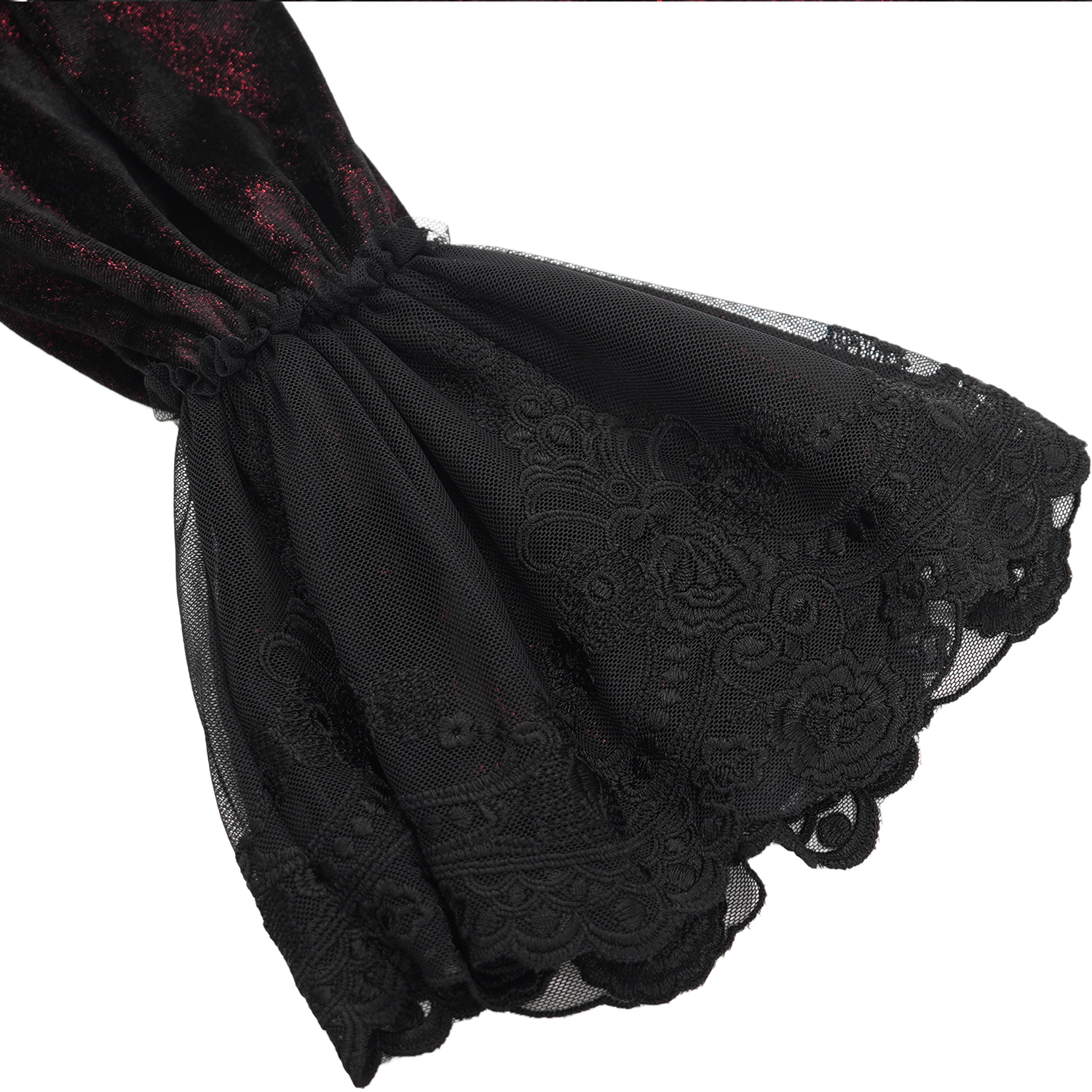 • Very original black gothic shirt • High ruffled neckline • Ruffles on the front • Tapered spikes on the shoulders • Puff sleeves • Cuffs adorned with lace • Engraved metal buttons • Also...