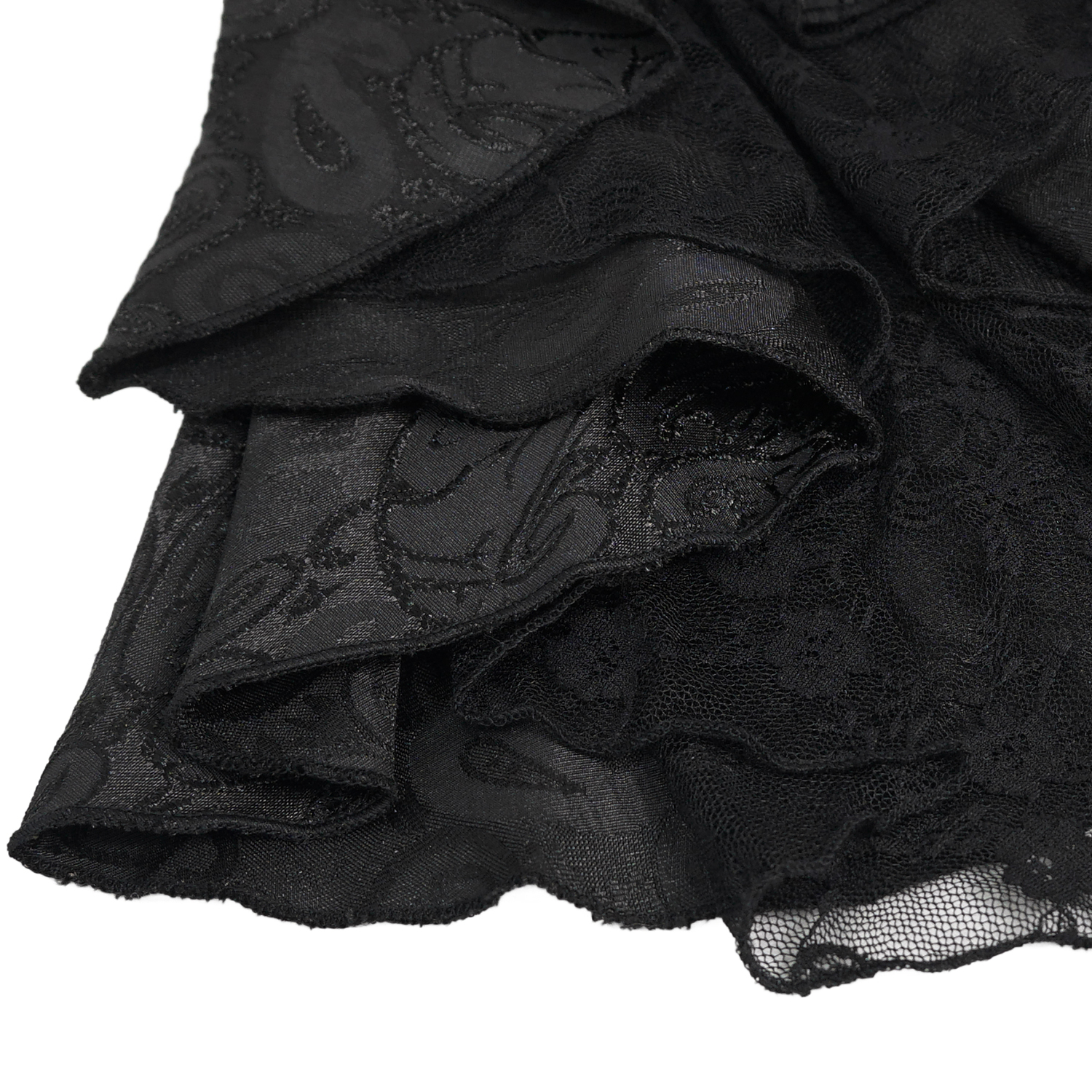• In black Paisley jacquard, matched with black lace with black rose pattern.