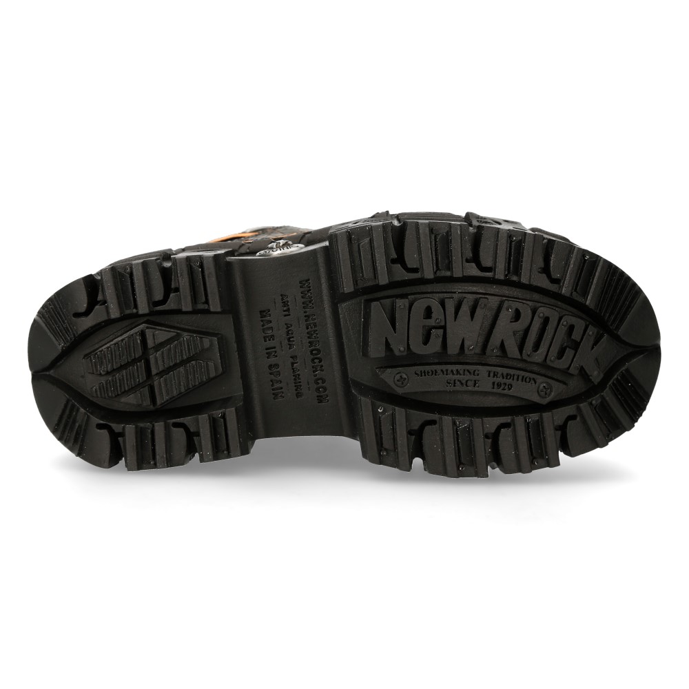 NEW ROCK METALLIC VEGAN COLLECTION • Comfort Plus System • Natural rubber soles • Removable and anatomic insoles • Comfort Last • Fire Soles • Exclusive hand-finishing By New Rock...