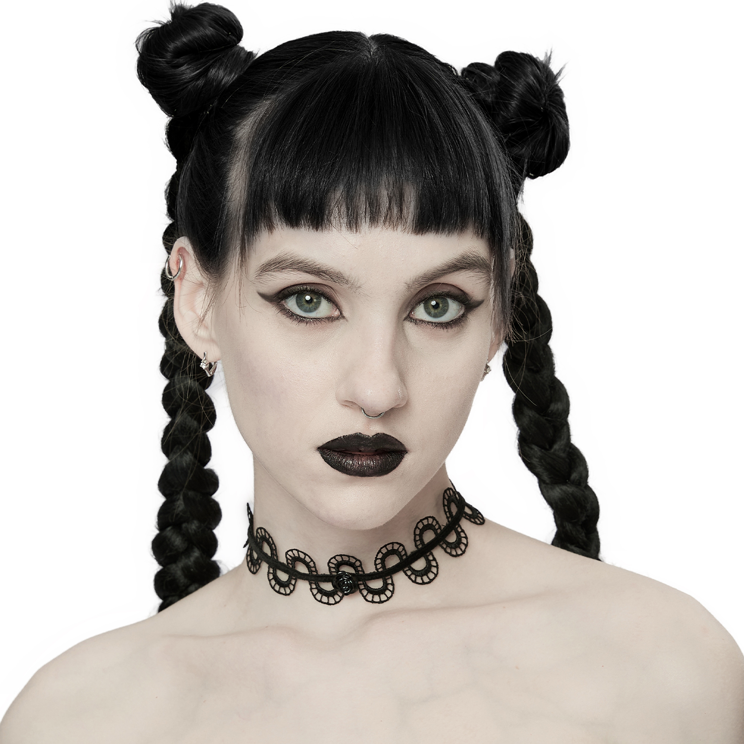 • Black imitation leather ribbon • Metallic spider web on the front with a black stone • Adjustable chain closure at the back of the neck • 60% Zinc Alloy, 40% Synthetic Leather By Devil Fashion...