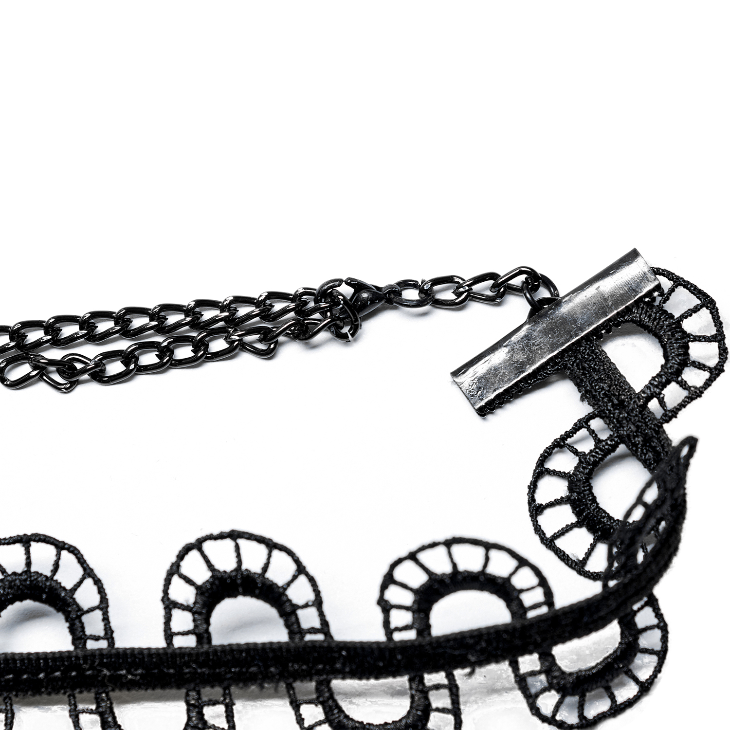 Gorgeous Gothic choker • Made of hanging black tassels and beads • Sexy fishnet strap • Exquisite rose patterned lace • Large black stone in the center • Clasp and adjustable chain at the back •...