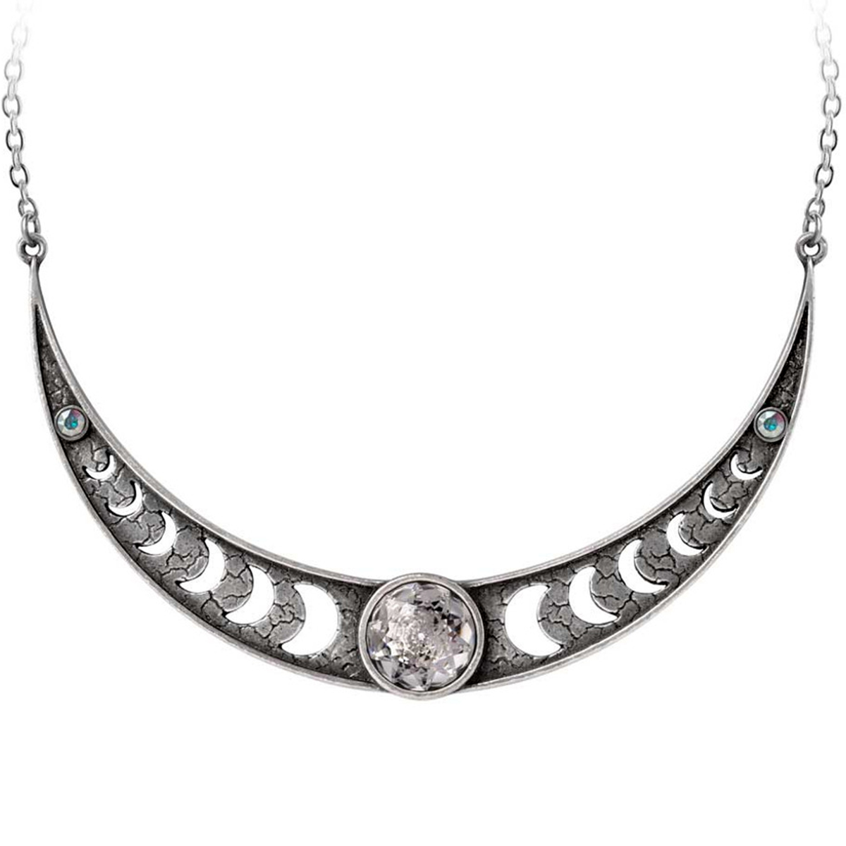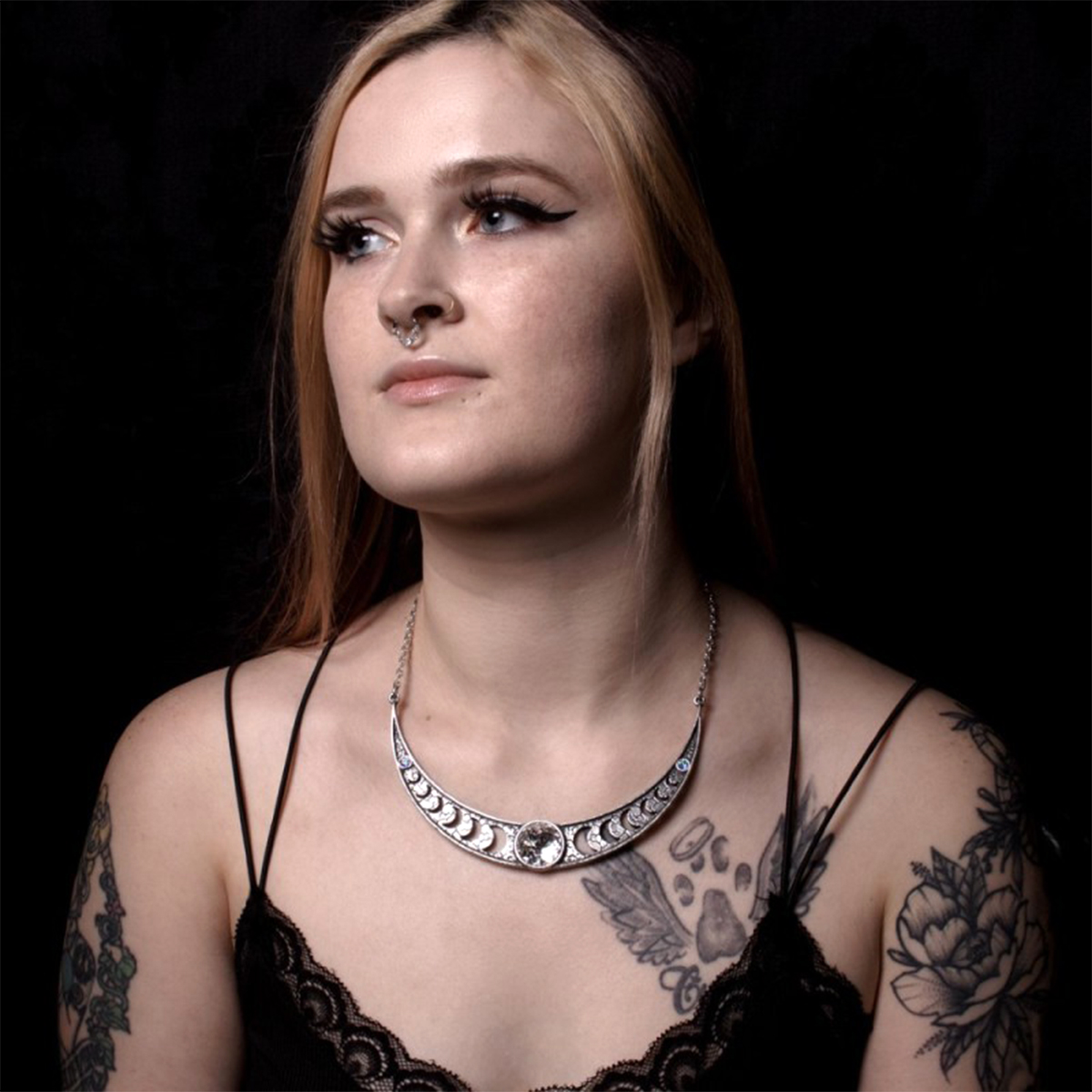 • A crescent moon, statement collar necklace decorated with moon phases and embellished with mystical Austrian cut Crystals!