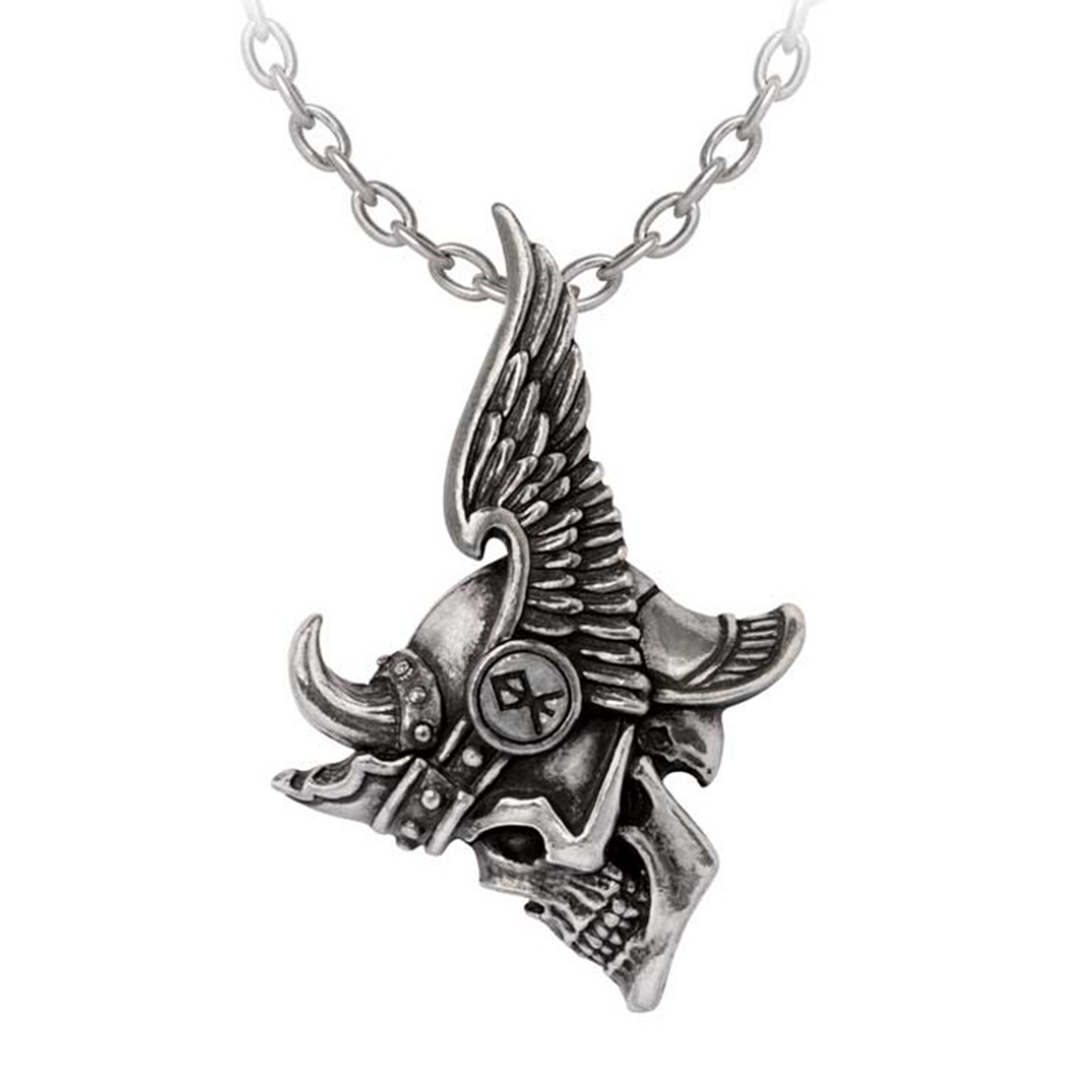 • A Viking inspired polished pewter pendant.