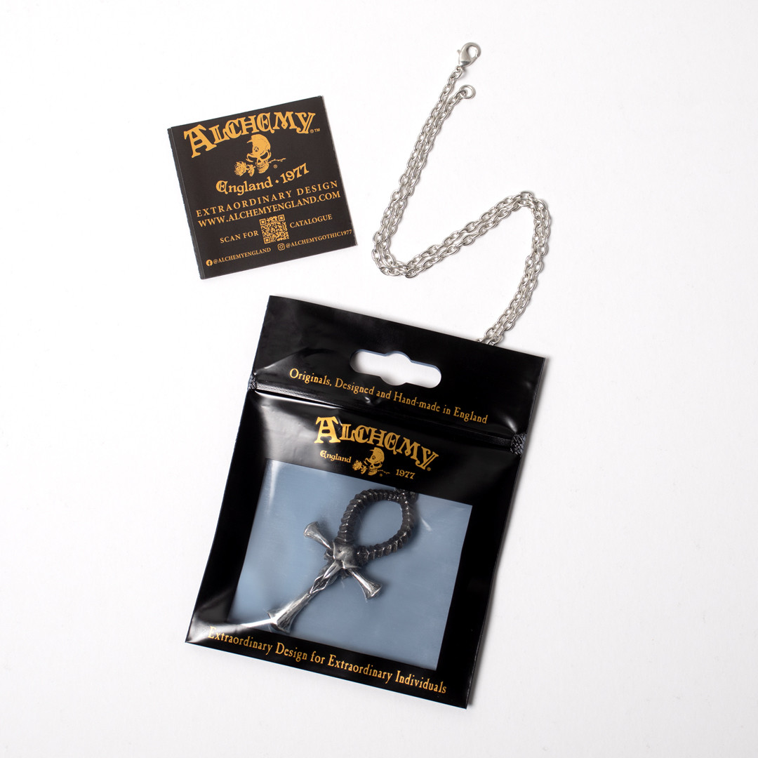 Symbol of the obscure, Mediaeval, mystic order and holders of arcane and ancient magical powers. • A dramatic jewelledpiece that's a real head turner • A pewter cross pendant enveloped by a...