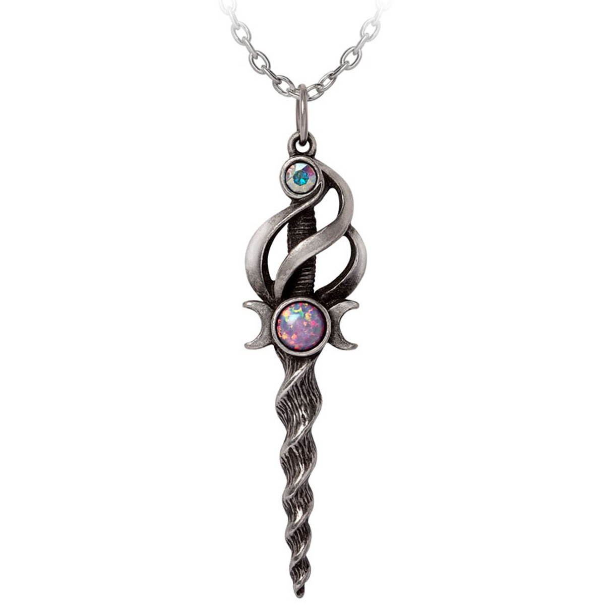 The new moon brings with it a promise of new love. • A delicate pewter pendant of a new moon crossed with a single black rose, with a resin flower. • Packaged in an Alchemy brand bag, with the...