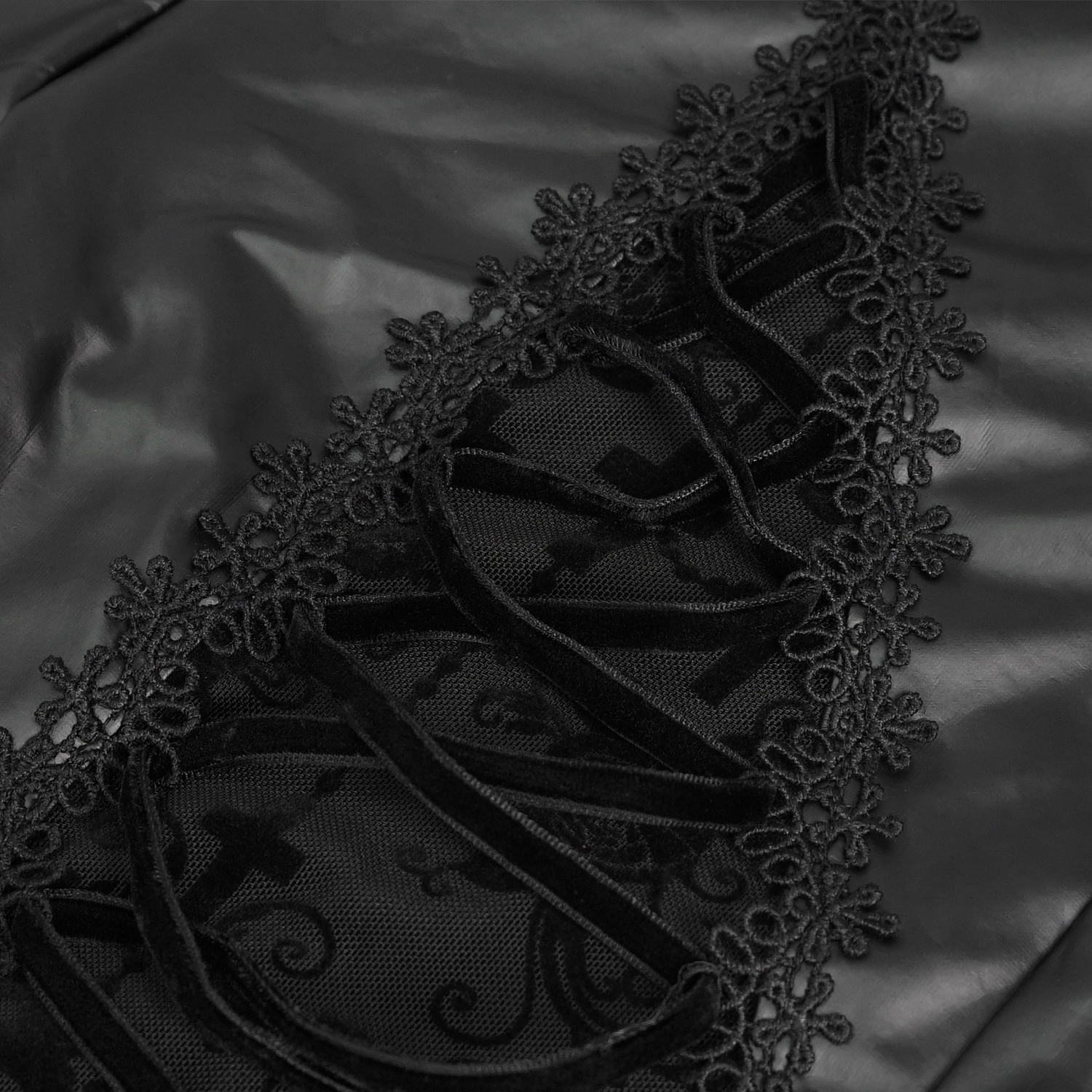 • In micro-elastic woven fabric, combined with mesh and lace • Symmetrical front split splice lace design • Flared hem incorporates the “sharp” Gothic architectural element • The collision with...