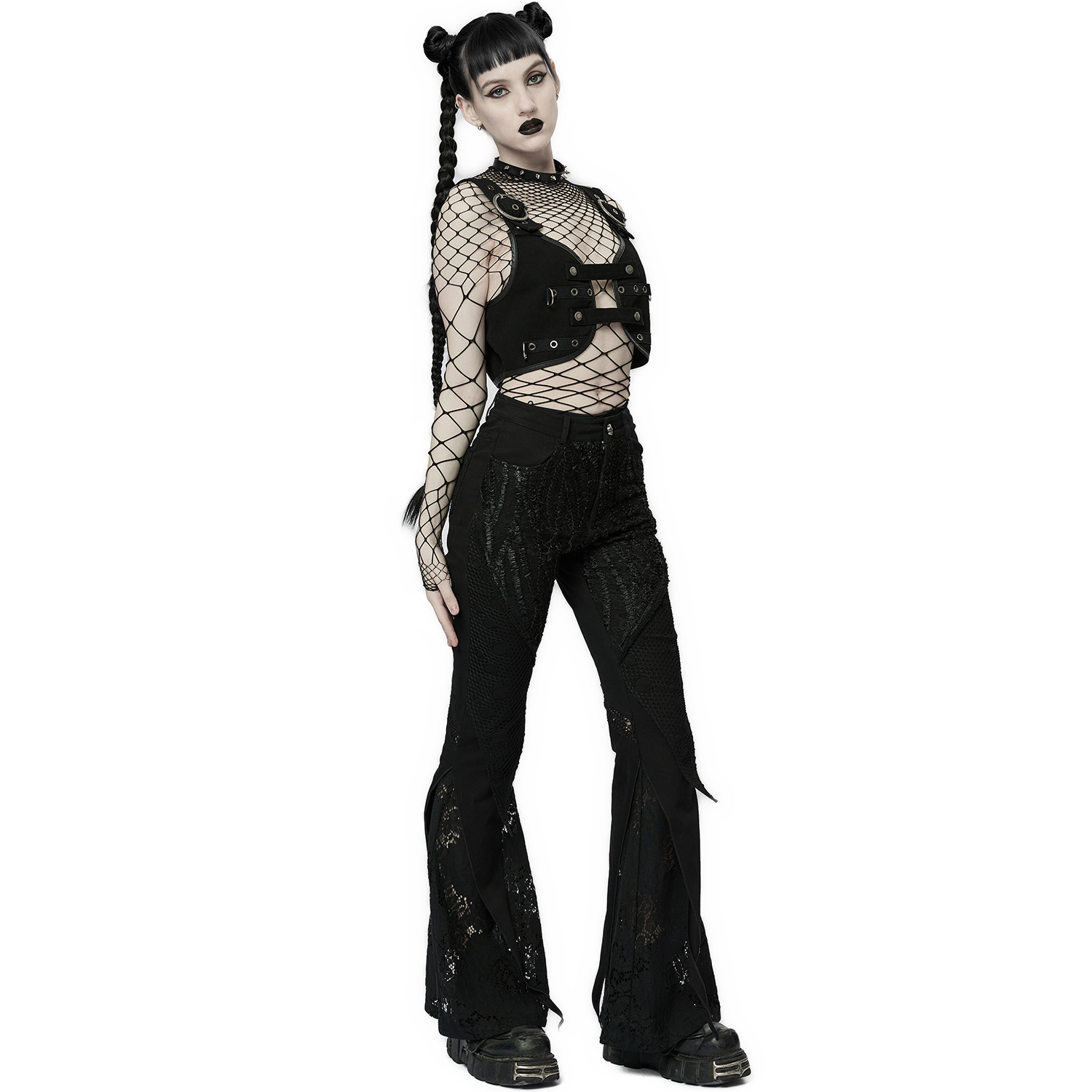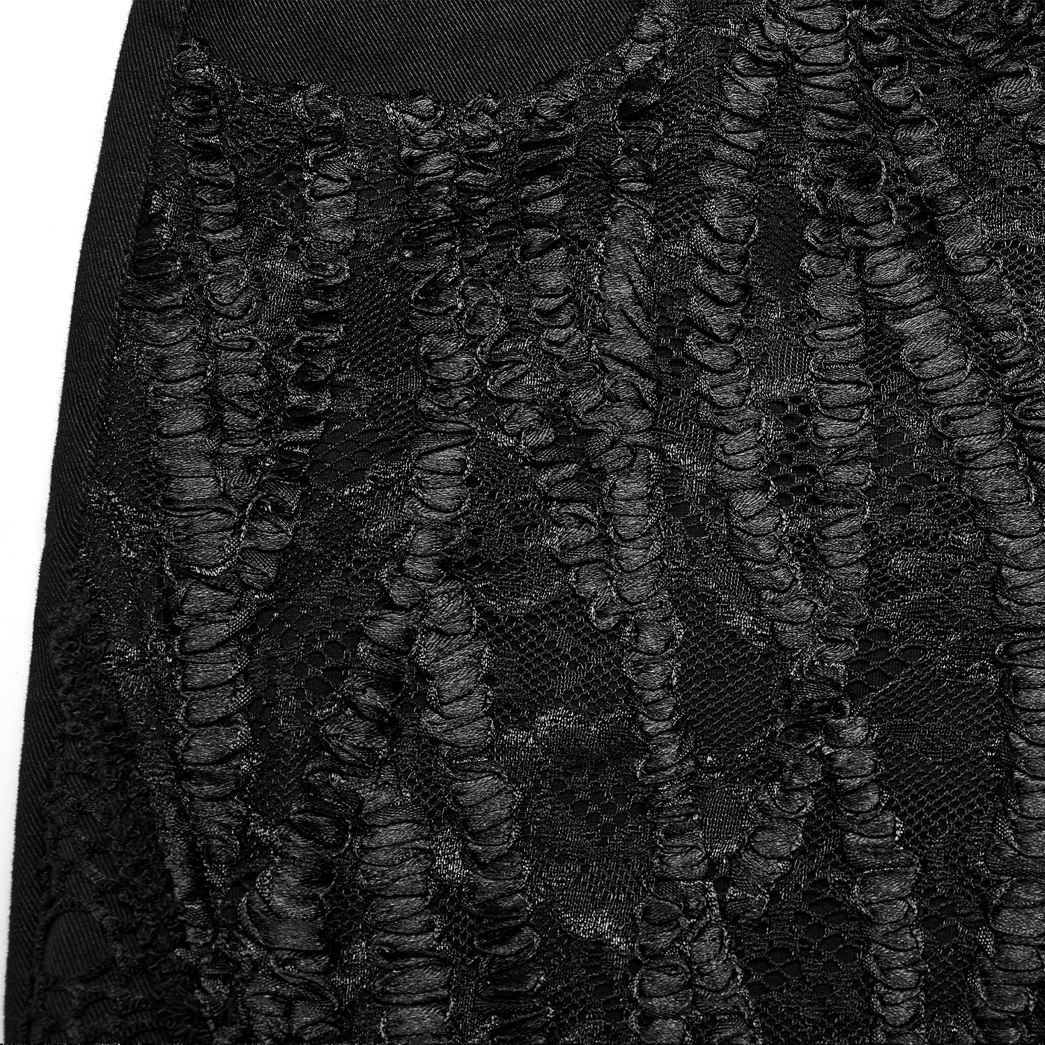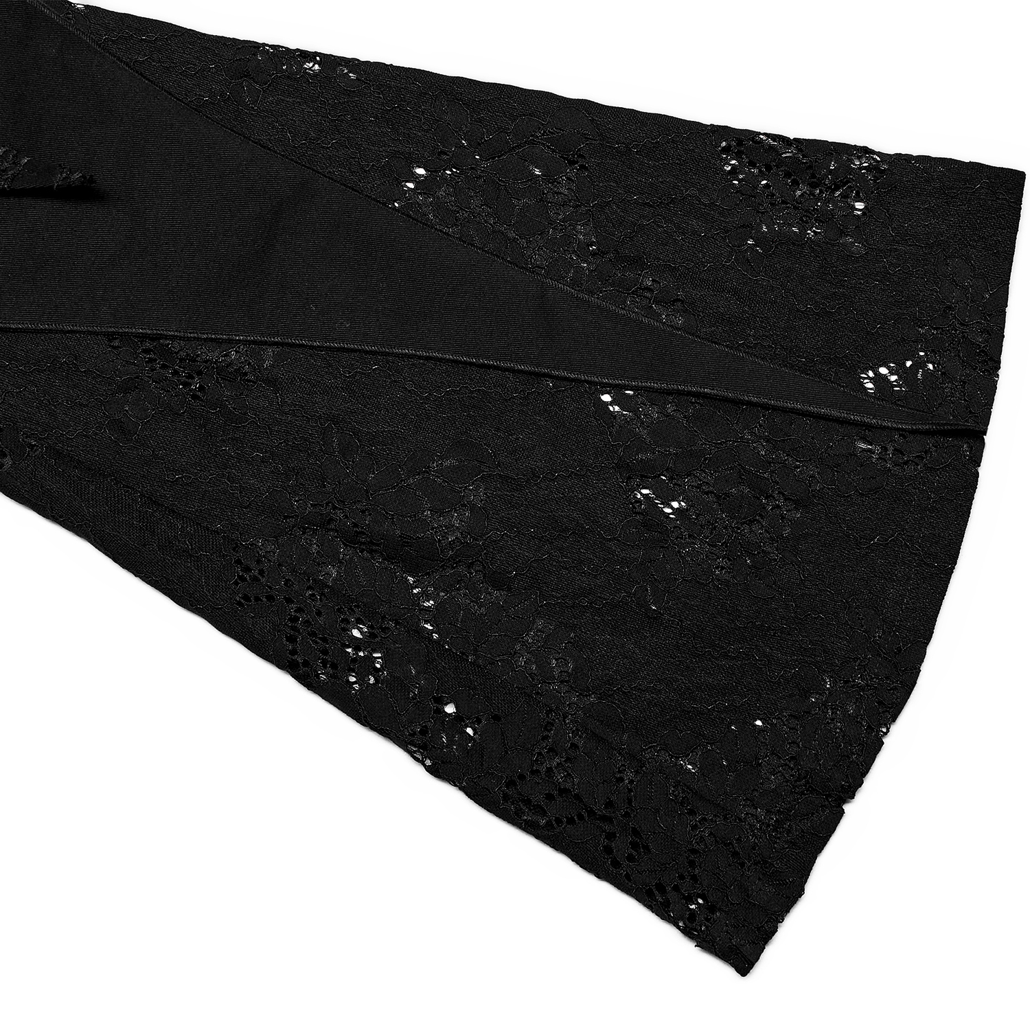 • In micro-elastic woven fabric, combined with mesh and lace • Symmetrical front split splice lace design • Flared hem incorporates the “sharp” Gothic architectural element • The collision with...