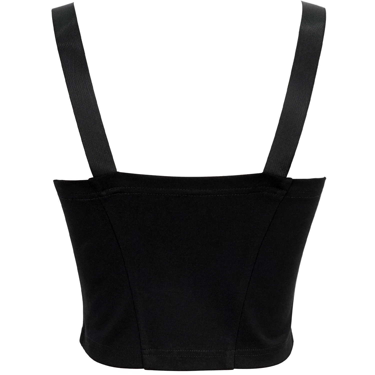 • Made from black cotton, combined with a rubberized leather-like fabric to create a two-piece waist cincher • Invisible zippers on the side • Studded decorations on the chest • Adjustable straps...