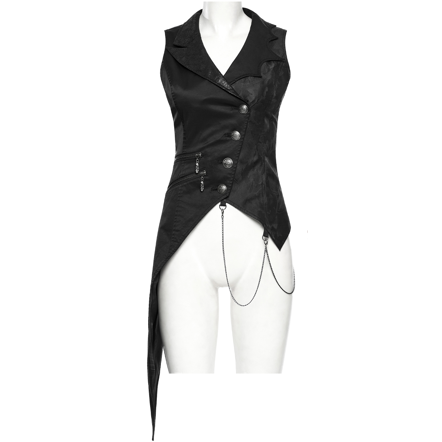 Gorgeous sleeveless gothic top • Visible zipper on the front • Coffin-shaped zipper pull • Double buckles on each shoulder • Metallic brand logo on the upper back • Fully open in the back • Tape...