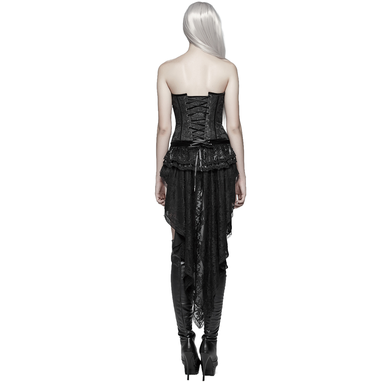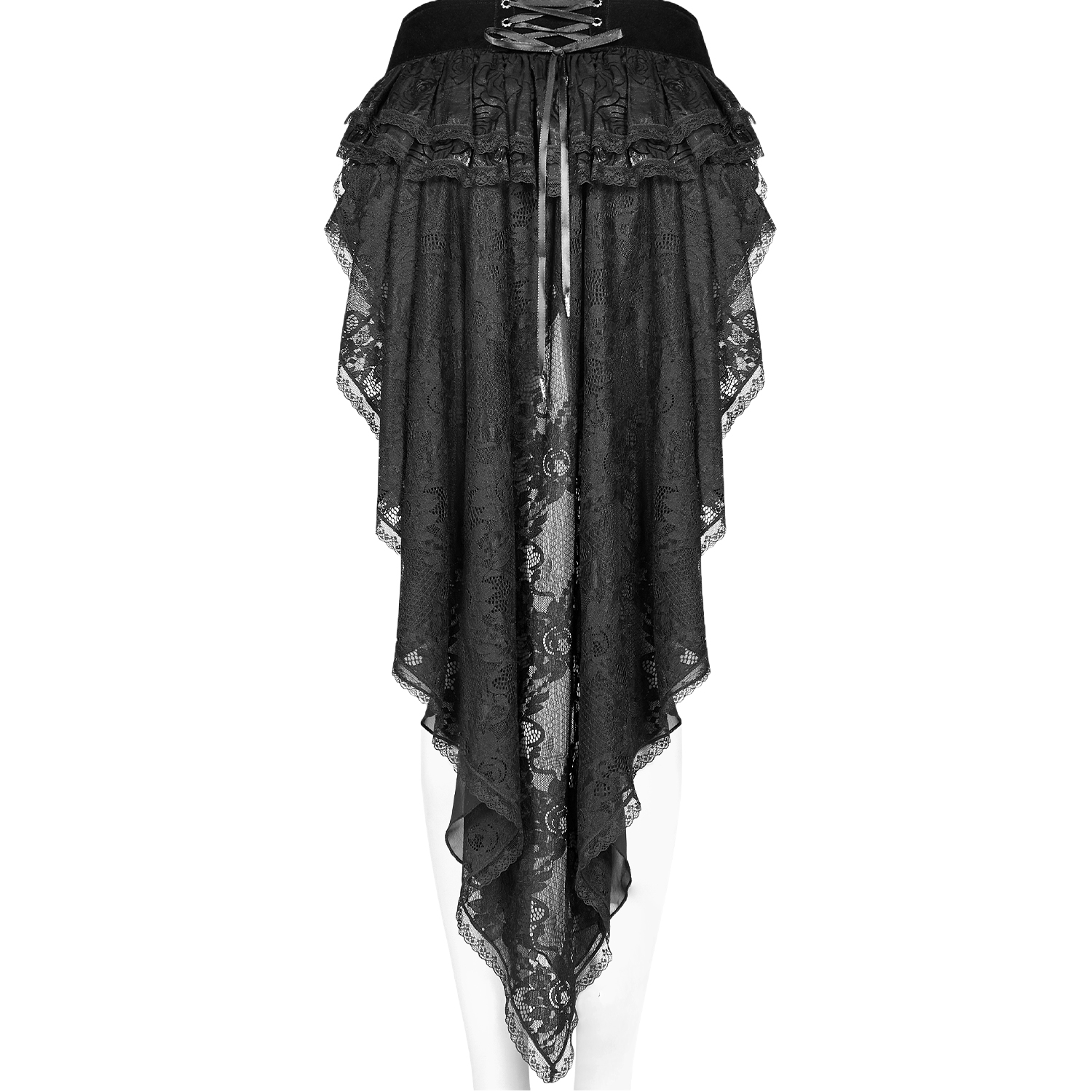 • Fitted shorts in stretchy black velvet • Ruffled black tulle skirt • Light, flowing tulle overlay for a feminine touch • Zipper closure with satin corset lacing at the front • Black lace at the...