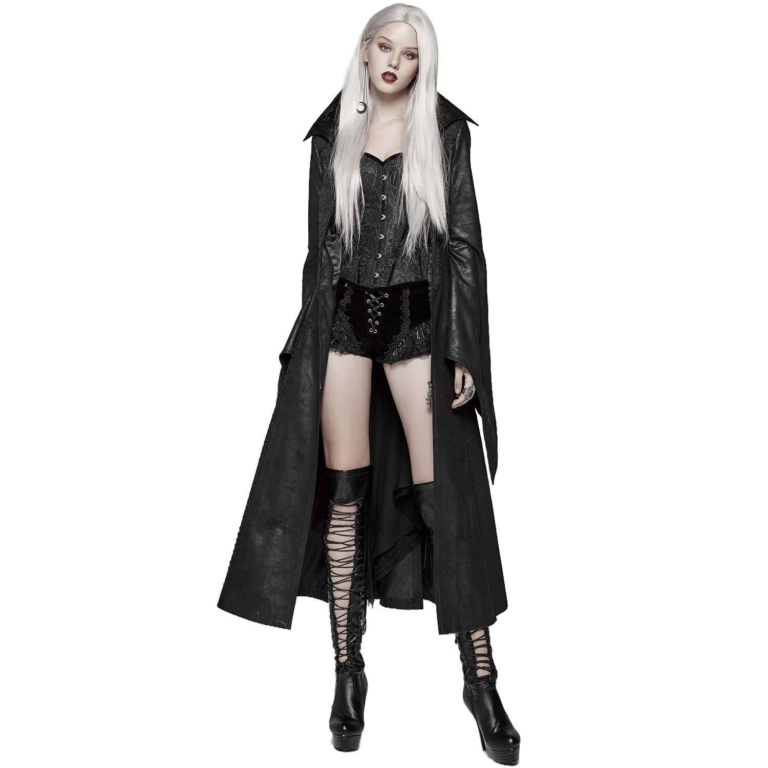• Black flared leg warmers for women • In stretch fabric with a ripped effect • Faux leather straps on the front • Lacing on the front • Slightly wider at the bottom • 100% Polyester By Punk Rave...