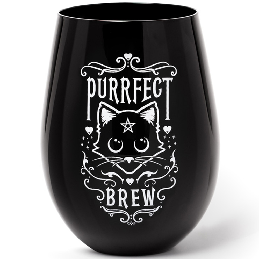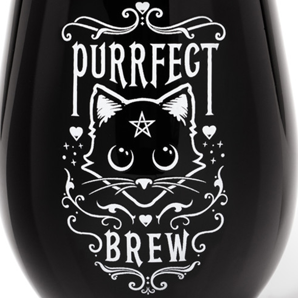 • A beautiful black glass with magic black cat art work and the words 'Purrfect Brew'